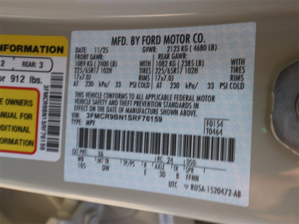 • VIN # 3FMCR9BN1SRF76159