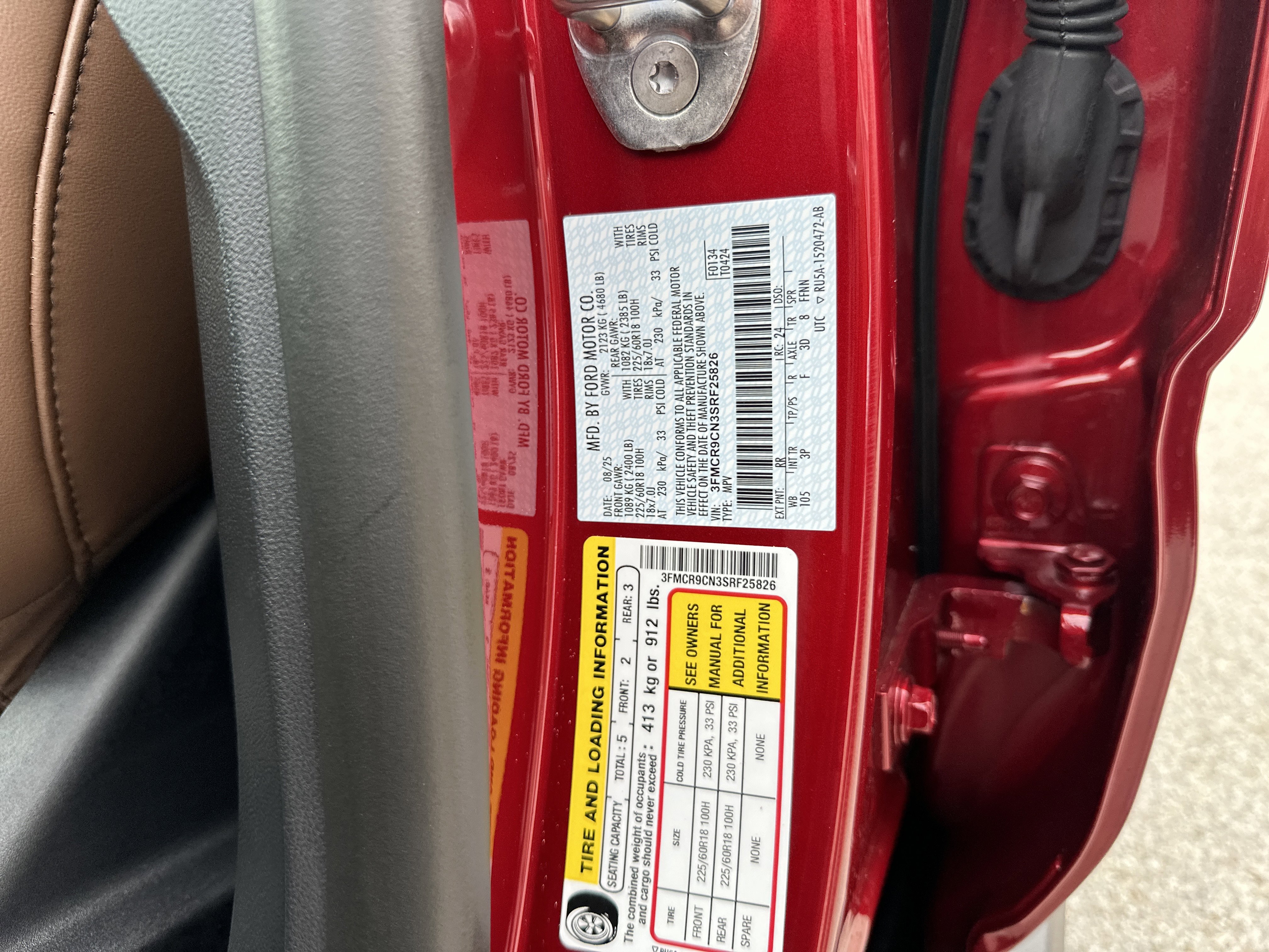 • VIN # 3FMCR9CN3SRF25826