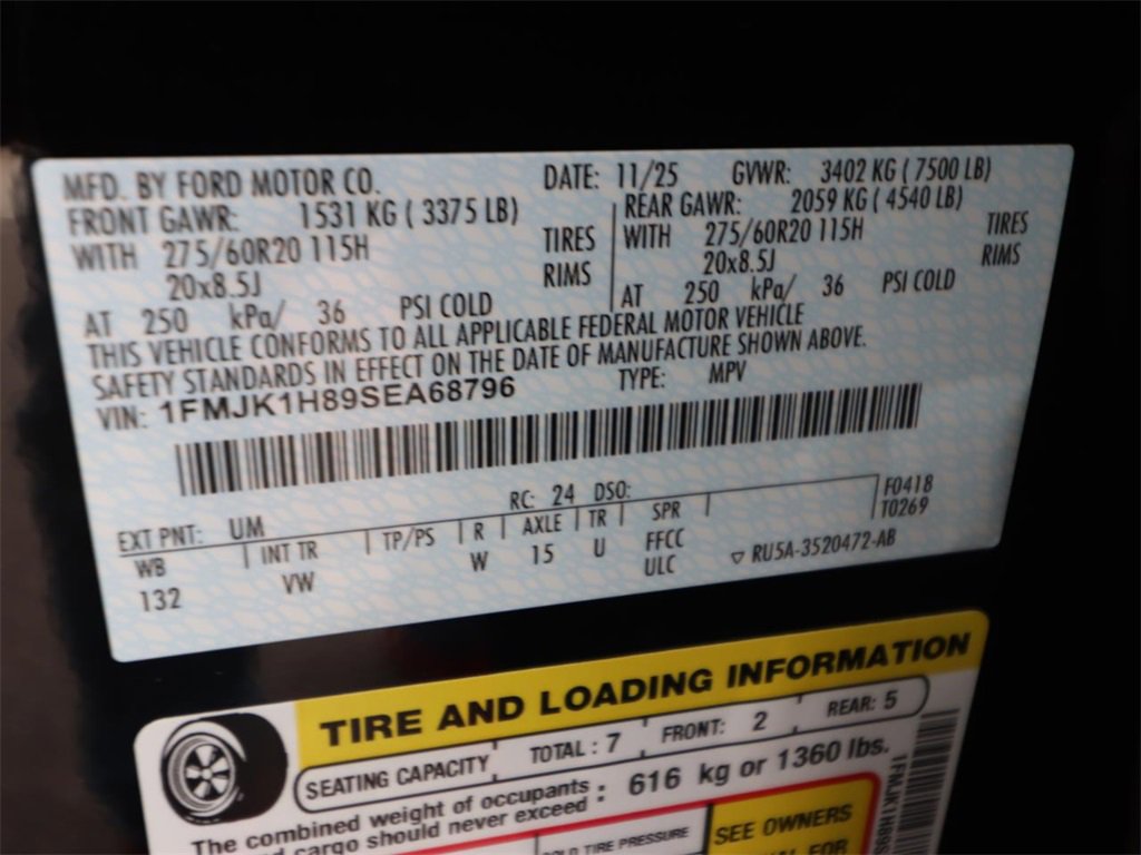 110V/400W AC Power Outlet, 2nd Row Power-Folding Captain's Chairs, 360-Degree Zone Lighting, 3rd Row Flexible Seating, 3rd Row Vinyl Seats, 4-Door Intelligent Access (Lock/Unlock), ActiveX Front Heated Captain's Chairs, BlueCruise Equipped, BlueCruise Equipped (1-Year Plan), Equipment Group 202A High Package, Flex Powered Console, Ford Split Gate, Front Side Laminated Glass, Heated Steering Wheel, Memory Driver Seat, Power Panoramic Vista Roof w/Power Sunshade, Power Tilt/Telescopic Steering Wheel w/Memory, Power-Folding Sideview Mirrors w/Autofold, Rain Sensing Wipers, SecuriCode Keyless Entry Keypad, Universal Garage Door Opener, USB Ports, Wheels: 20" Carbonized Gray Bright Machined Aluminum, Wireless Charging Pad.