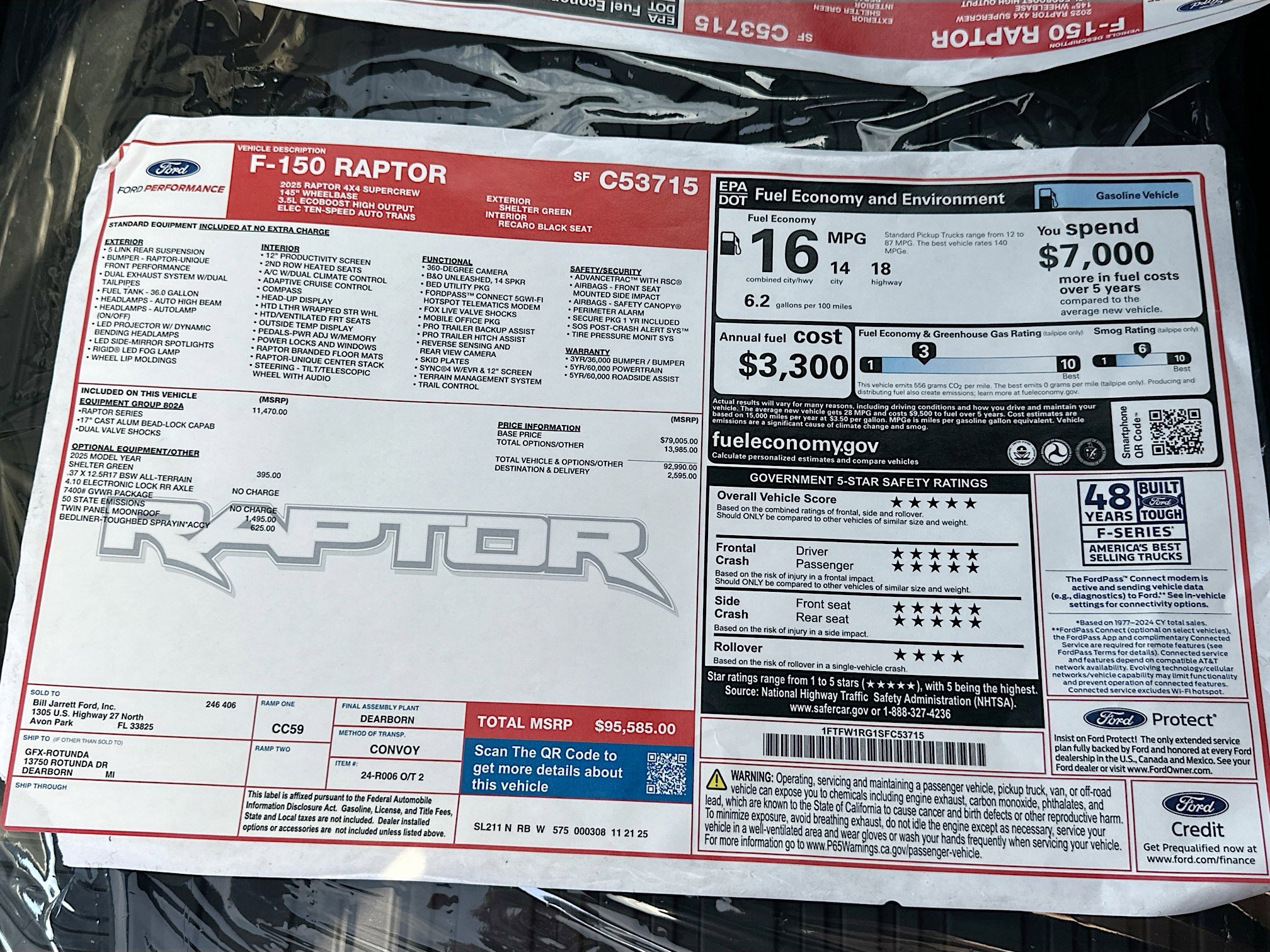 Shelter Green 2025 Ford F-150 Raptor 4WD 10-Speed Automatic 3.5L V6 EcoBoost 4WD.