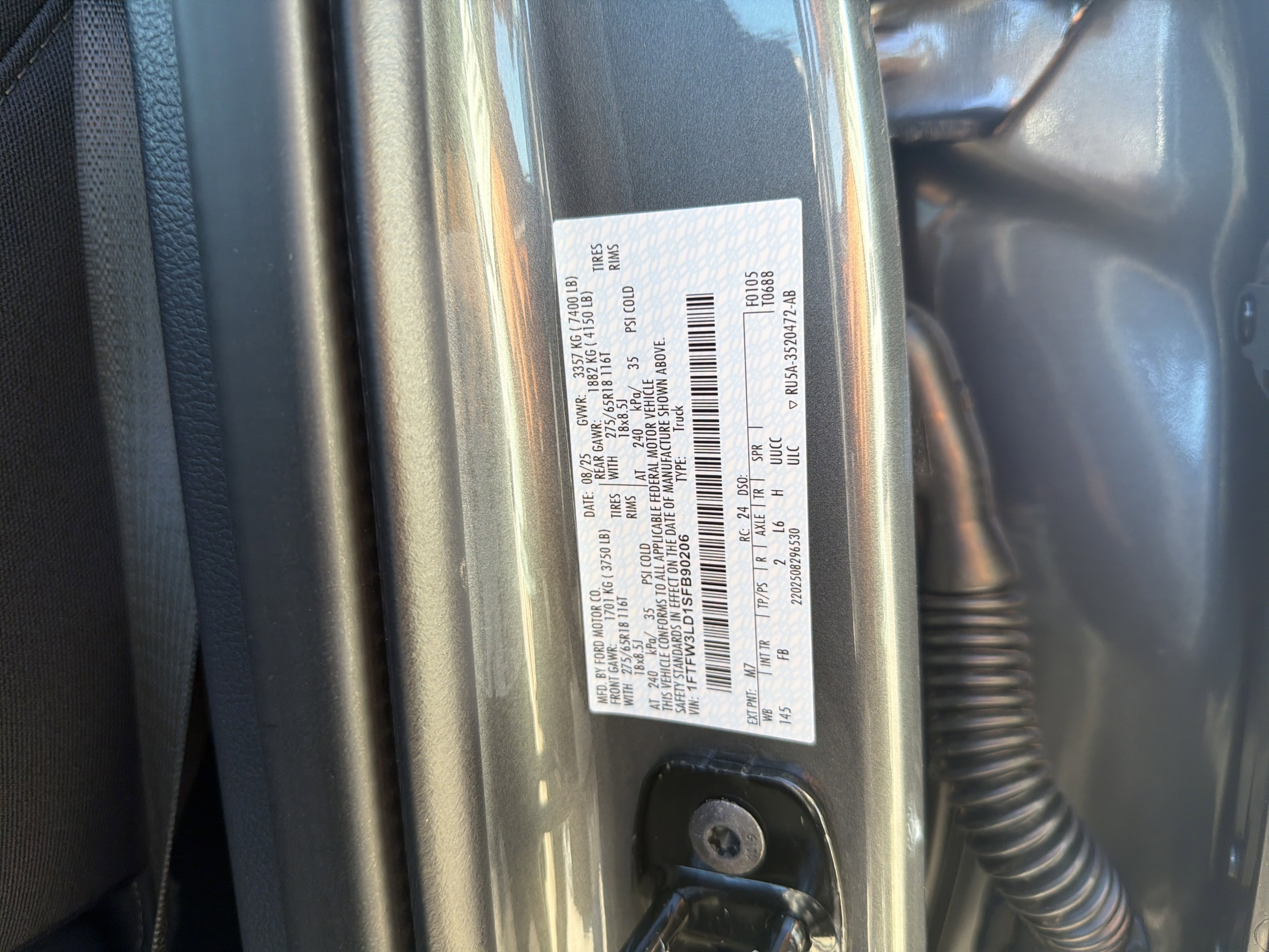 • VIN # 1FTFW3LD1SFB90206
