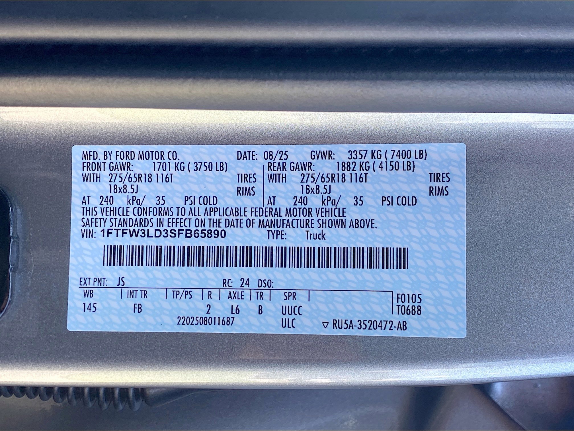 Trip Computer, Transmission: Electronic 10-Speed Automatic -inc: SelectShift w/progressive range select and selectable drive modes: normal, ECO, sport, tow/haul, slippery, deep snow/sand and mud/rut, Trailer Wiring Harness, Tires: 275/65R18 BSW A/T, Tire Specific Low Tire Pressure Warning, Tailgate/Rear Door Lock Included w/Power Door Locks, Tailgate Rear Cargo Access, SYNC 4 w/Enhanced Voice Recognition -inc: 12 LCD capacitive touchscreen w/swipe capability, wireless phone connection, cloud connected, AppLink w/App catalog, 911 Assist, Apple CarPlay and Android Auto compatibility, digital owners manual and conversational voice command recognition, Steel Spare Wheel, Solid Axle Rear Suspension w/Leaf Springs.