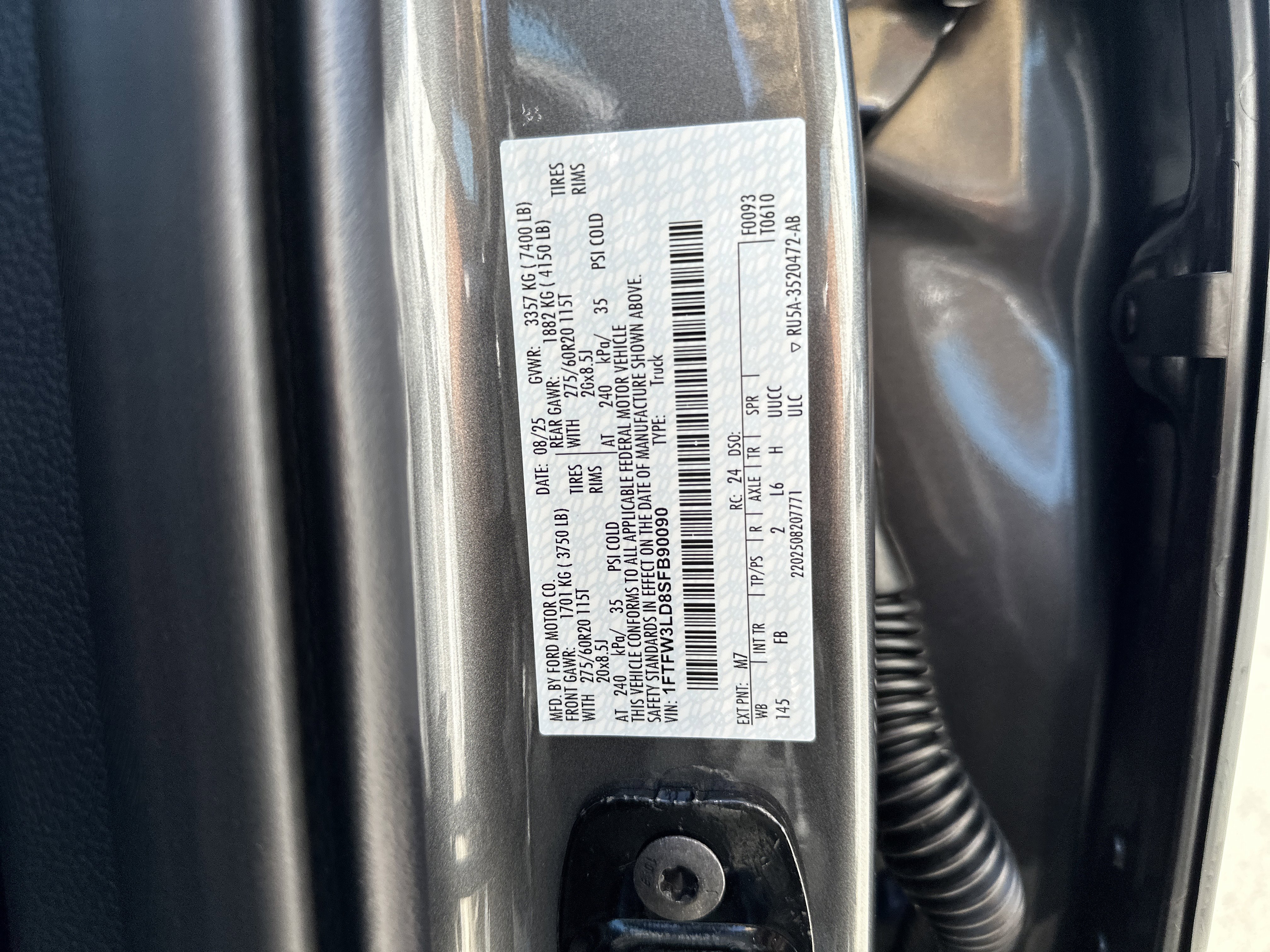 • VIN # 1FTFW3LD8SFB90090