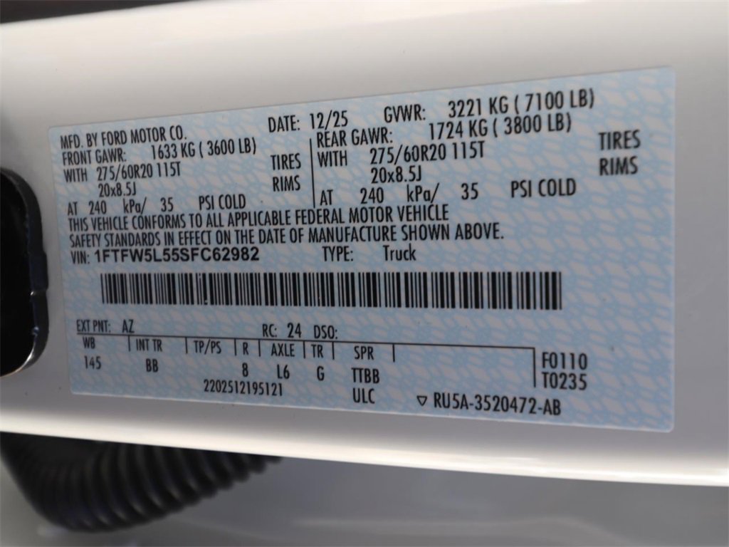 Star White Metallic Tri-Coat 2025 Ford F-150 Lariat 4WD 10-Speed Automatic 5.0L V8