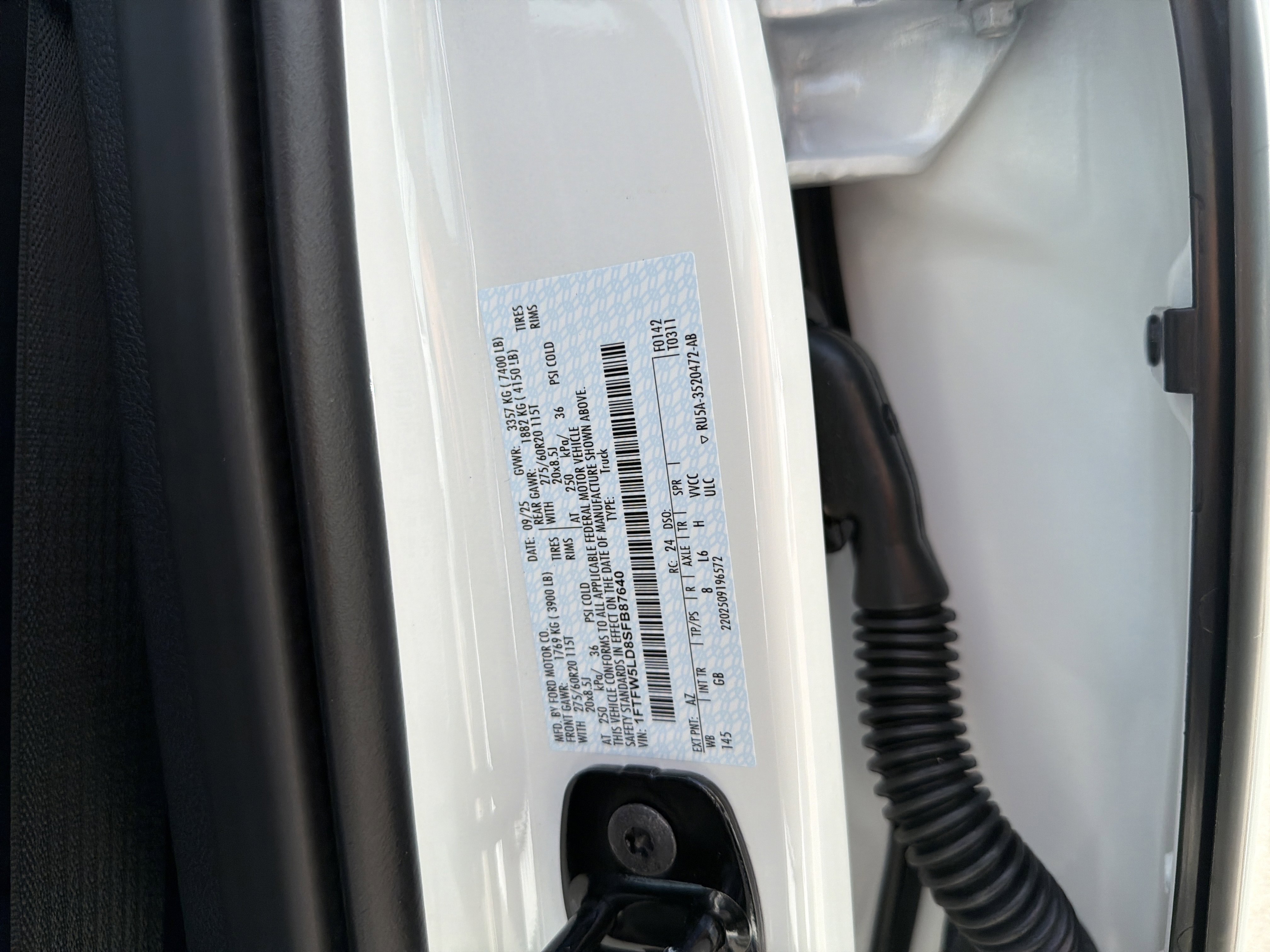 • VIN # 1FTFW5LD8SFB87640