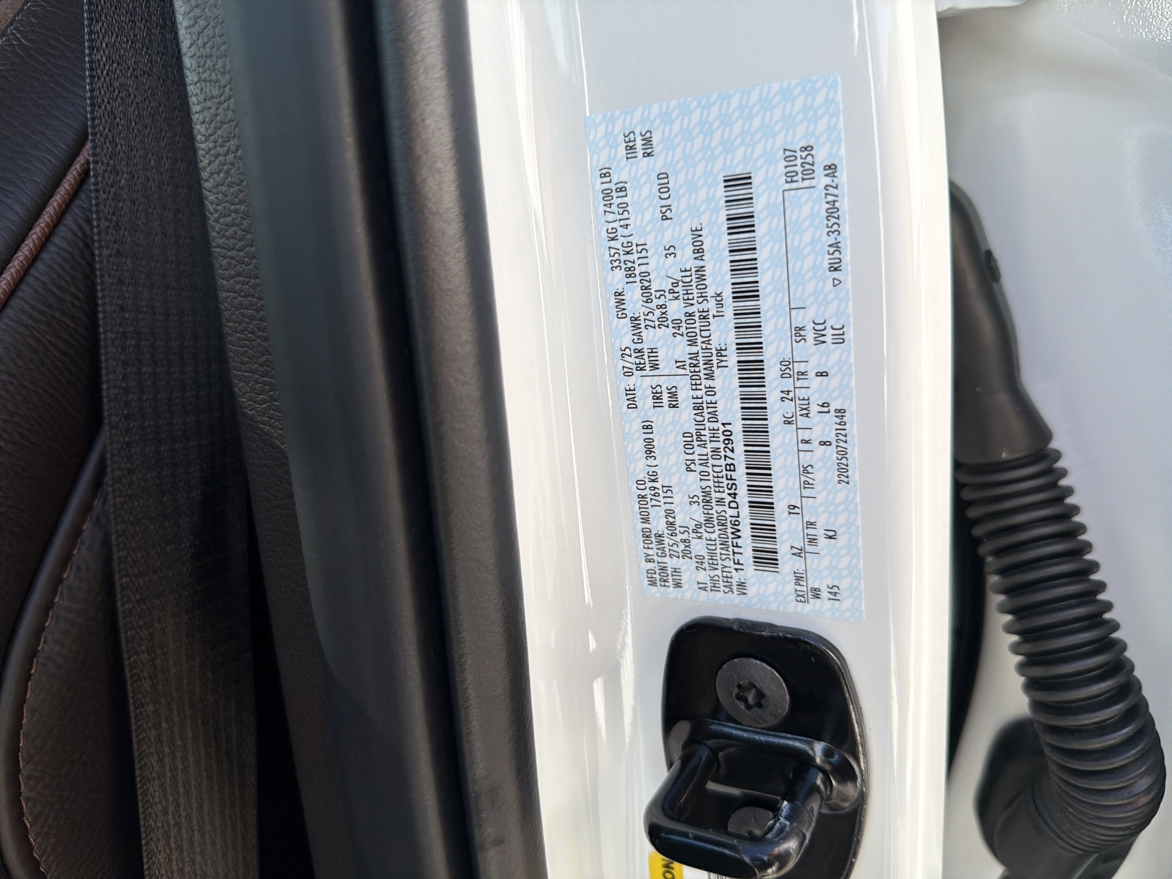 • VIN # 1FTFW6LD4SFB72901