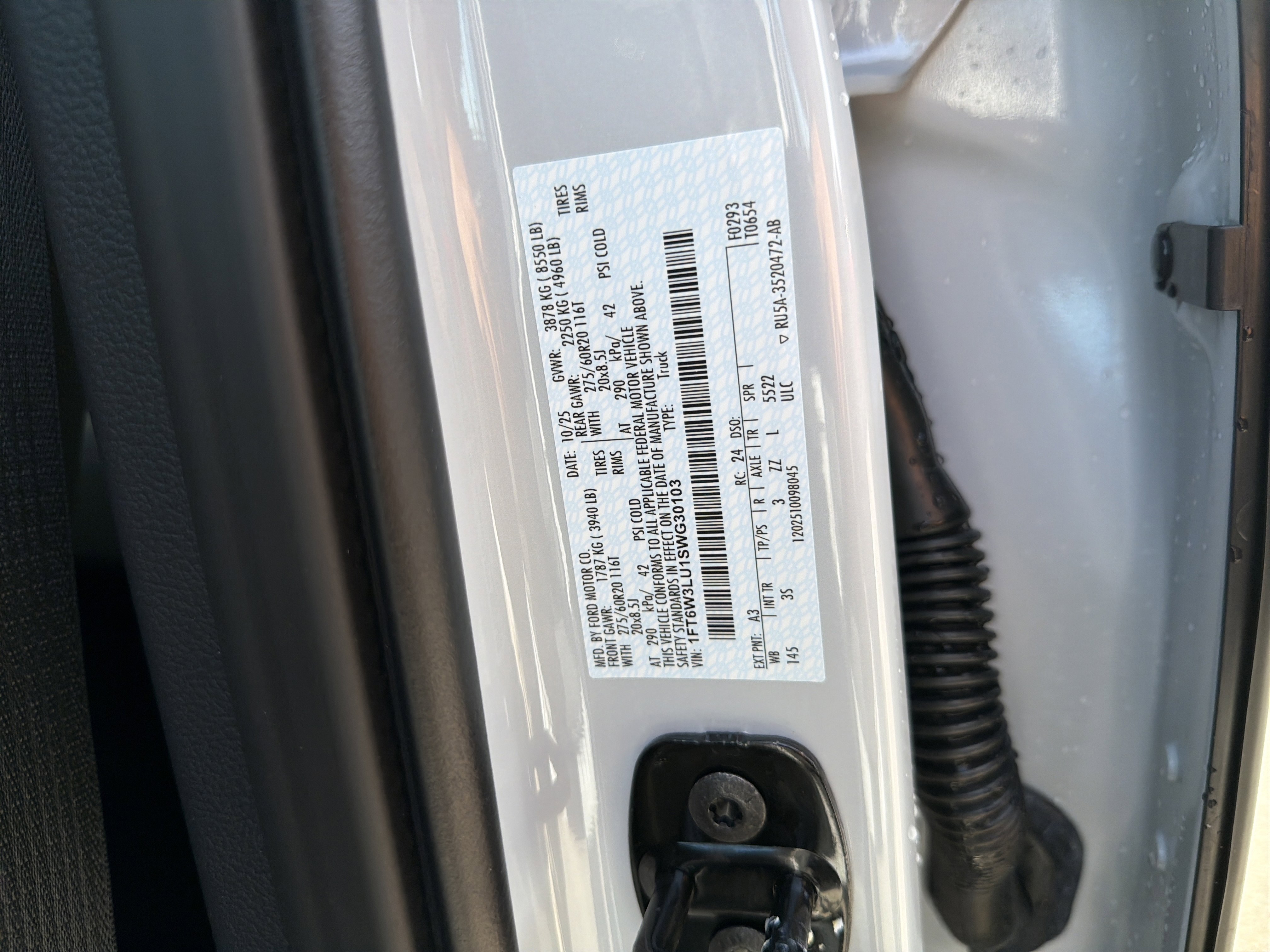 • VIN # 1FT6W3LU1SWG30103