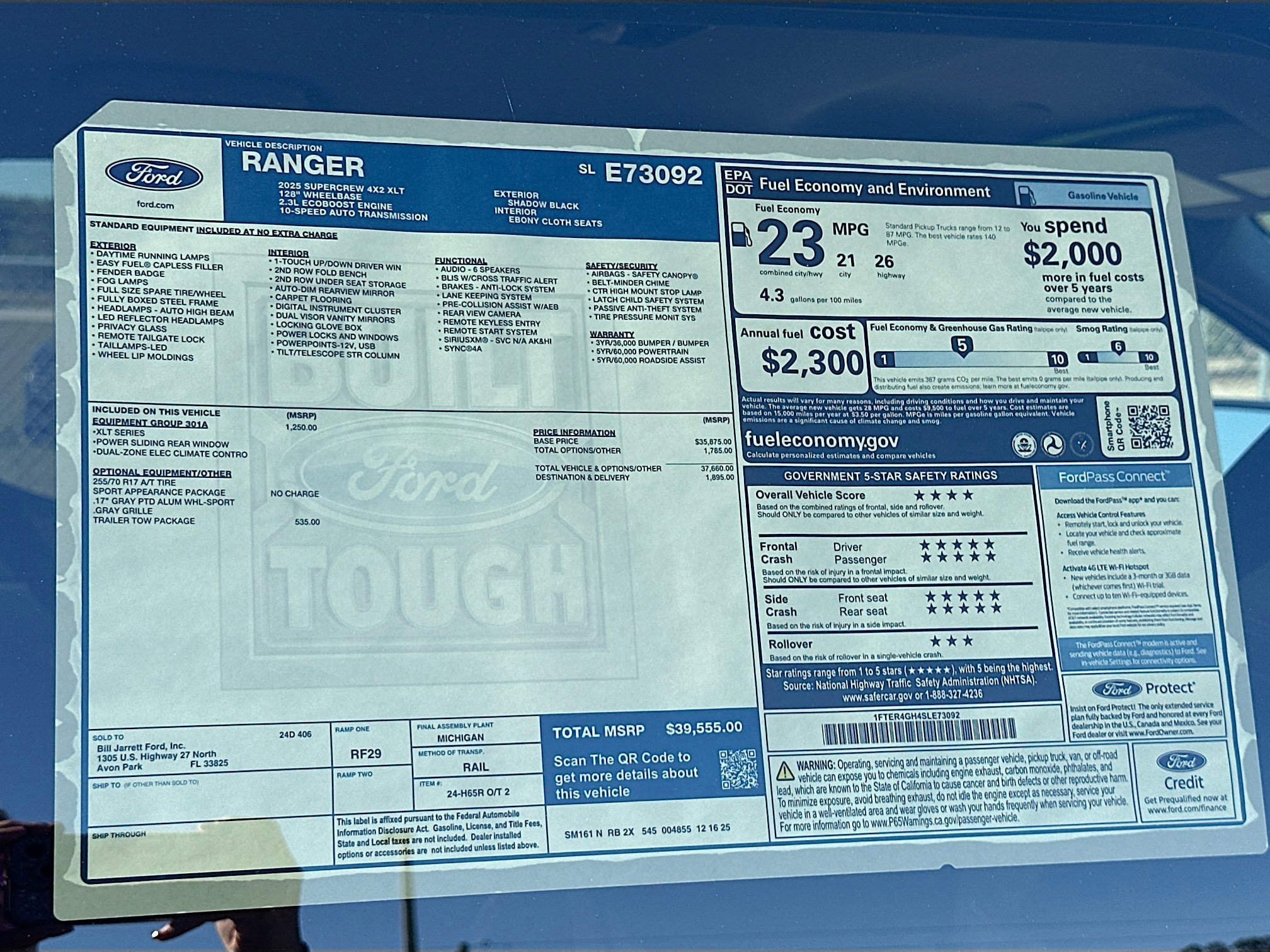 Shadow Black 2025 Ford Ranger XLT RWD 10-Speed Automatic EcoBoost 2.3L I4 GTDi DOHC Turbocharged VCT Price includes: $1000 - Bonus Cash $2000 - Bonus Customer Cash