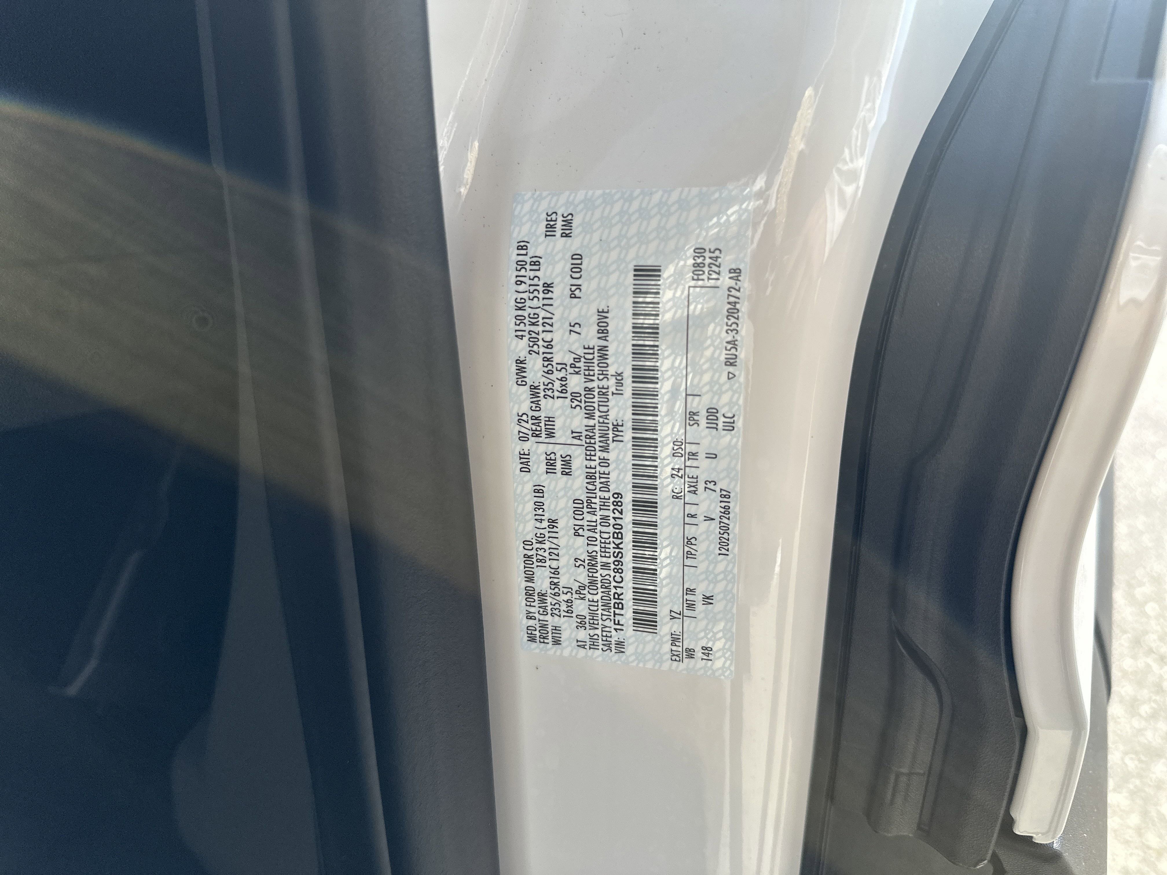 • VIN # 1FTBR1C89SKB01289