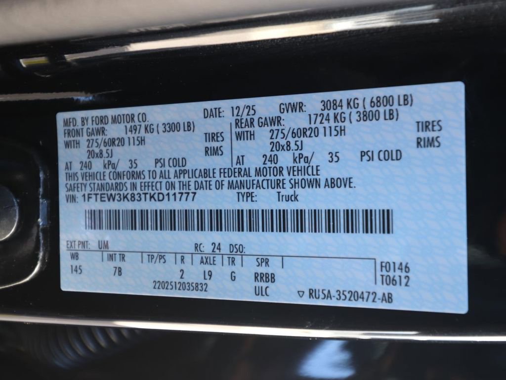 18" Painted Aluminum Wheels, 3.55 Axle Ratio, 360 Degree Camera, 400W Pro Power Onboard (cab & Bed), 6" Angular Bright Anodized Step Bar, Adaptive Cruise Control with Stop and Go, Auto-Dimming Rear-View Mirror, Bed Tailgate Lock by McGard, Black Painted Mesh Grille with Chrome Center Bar, Black Platform Running Boards, Body-Color Door Handles, Chrome Door Handles, Chrome Front and Rear Bumpers, Chrome Single-Tip Exhaust, Cloth 40/20/40 Front Seat, Dual-Zone Electronic Automatic Temperature Control, Equipment Group 302A Mid, Exposed Wheel Lock Kit, Ford Co-Pilot360 Assist 2.0, Ford Connectivity Package (1-Year Included), Front Parking Sensors, GVWR: 6,800 lbs Payload Package, Heated and Cooled front seats, Integrated Trailer Brake Controller, Intelligent Access with Push Button Start, Power Glass Heated Sideview Mirrors, Power-Sliding Rear Window, Radio: AM/FM Stereo with SiriusXM 360L, Remote Start System with Remote Tailgate Release, SYNC 4 with Enhanced Voice Recognition, Tow/Haul Package, Towing Technology, Tray Style Floor Liner with Carpet Mats, Wheels: 20" Chrome-Like PVD, Wrapped Steering Wheel, XLT Chrome Appearance Package.