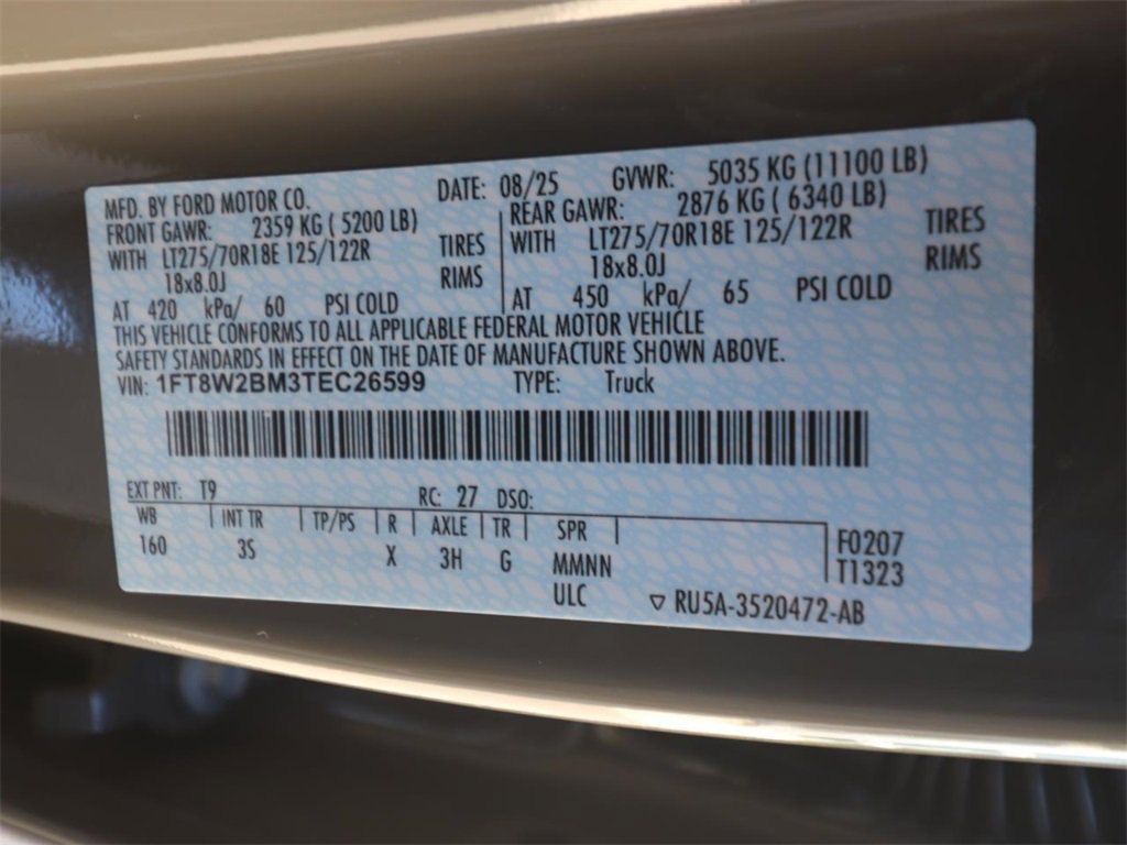 4WD, 360-Degree Camera, 360-Degree Camera Package, 6" Angular Bright Anodized Step Bars, Automatic High Beam, BLIS with Cross-Traffic Alert, Body-Color Door Handles, Bright Chrome Grille with Chrome Inserts, Cloth 40/20/40 Split Bench Seat, Electrochromic Self-Dimming Rear-View Mirror, Electronic-Locking with 3.31 Axle Ratio, Exterior Backup Alarm, Ford Connectivity Package (one-Time Purchase - 7 Years), FX4 Off-Road Package, GVWR: 10,000 Lb Payload Package, GVWR: F-250 >10K Package, Heated and Cooled front seats, Hill Descent Control, Intelligent Access with Push-Button Start, LED Box Lighting, LED Center High-Mounted Stop Lamp (CHMSL) Camera, LED Fog Lamps, Off-Road Specifically Tuned Shock Absorbers, Order Code 603A, PowerScope Trailer Tow Mirrors with Heat, Pro Power Onboard - 2kW, Radio: AM/FM Stereo with MP3 Player, Radio: B&O Sound System by Bang and Olufsen, Rear Parking Sensors, Remote Start System, Remote Tailgate Release, SiriusXM with 360L, SiriusXM with 360L (3-Year Plan), SYNC 4, SYNC 4 with Enhanced Voice Recognition, Unique FX4 Off-Road Box Decal, Wheels: 18" Sparkle Silver Painted Cast Aluminum, XLT Premium Package.