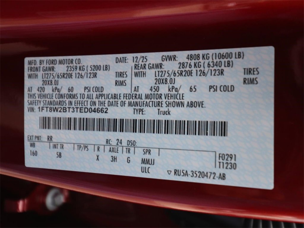 Ruby Red Metallic Tinted Clearcoat 2026 Ford F-250SD Lariat 4WD 10-Speed Automatic Power Stroke 6.7L V8 DI 32V OHV Turbodiesel