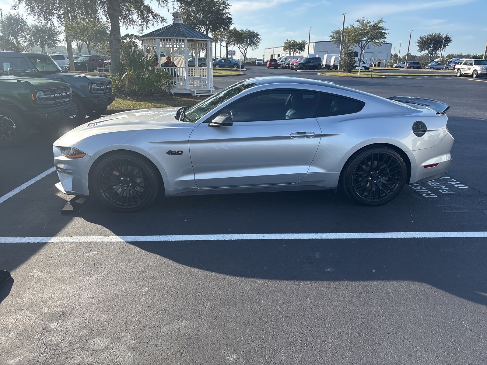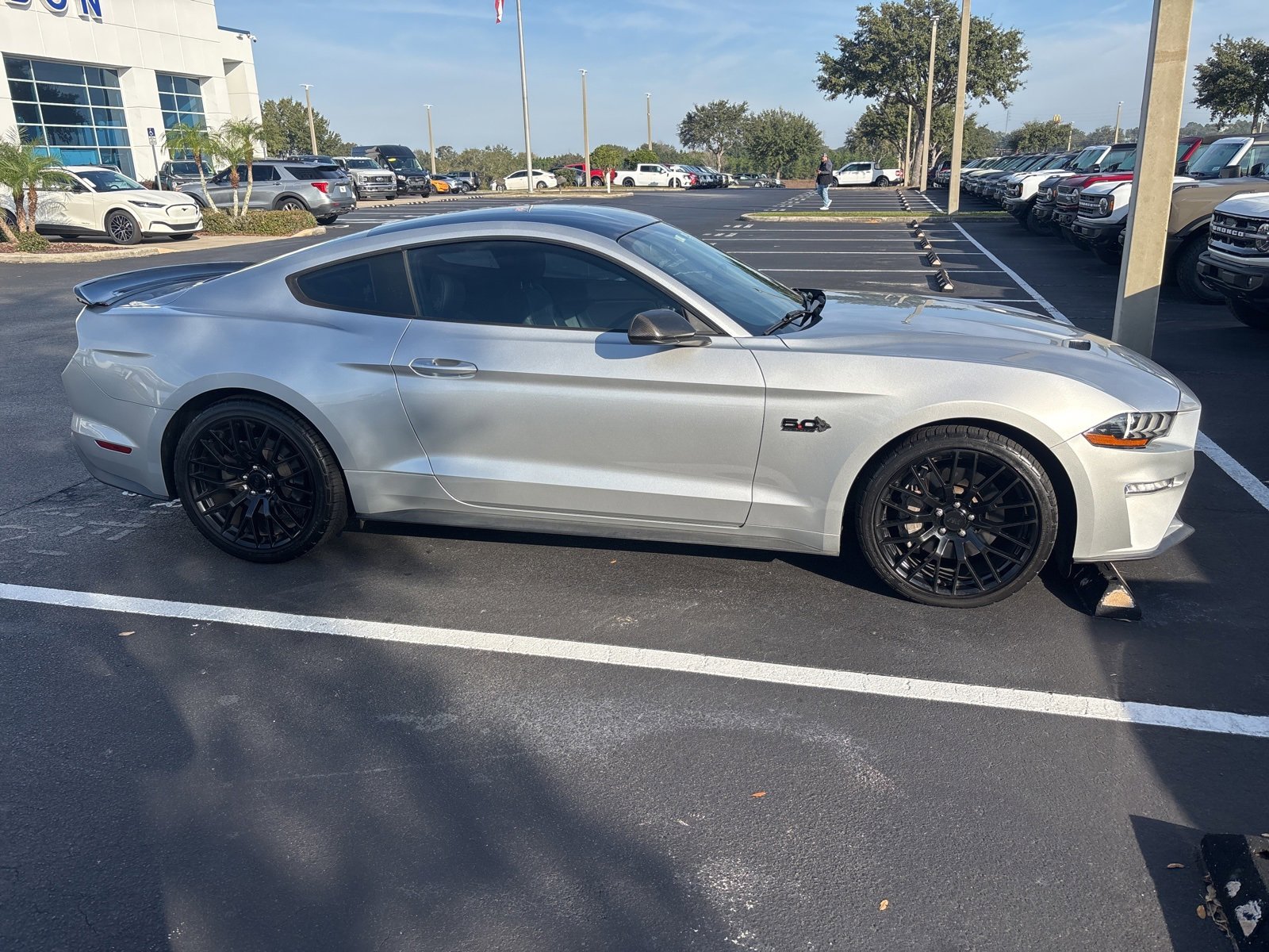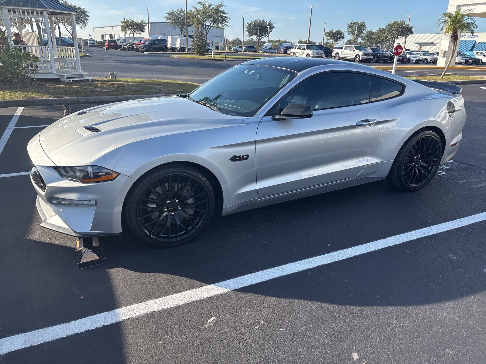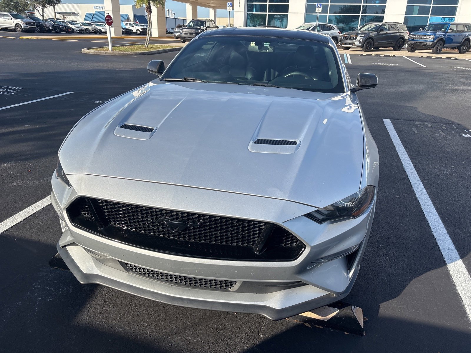 BLUE CERTIFIED, Ford Blue Advantage: Blue Certified Certified, 4-Wheel Disc Brakes, 6 Speakers, ABS brakes, Air Conditioning, Alloy wheels, AM/FM radio, AM/FM Stereo w/Single CD Player, Auto-dimming Rear-View mirror, Black Accent Package, Black Decklid Spoiler, Black GT, 5.0 & Pony Badges, Block heater, Brake assist, Bumpers: body-color, CD player, Cloth Bucket Seats, Compass, Delay-off headlights, Driver door bin, Driver vanity mirror, Dual front impact airbags, Dual front side impact airbags, Electronic Stability Control, Emergency communication system: 911 Assist, Equipment Group 300A, Exterior Parking Camera Rear, Four wheel independent suspension, Front anti-roll bar, Front Bucket Seats, Front Center Armrest, Front fog lights, Front reading lights, Fully automatic headlights, Illuminated entry, Knee airbag, Low tire pressure warning, Occupant sensing airbag, Outside temperature display, Overhead airbag, Overhead console, Painted Black Roof, Panic alarm, Passenger door bin, Passenger vanity mirror, Power door mirrors, Power driver seat, Power passenger seat, Power steering, Power windows, Radio data system, Rear anti-roll bar, Rear window defroster, Remote keyless entry, Security system, Speed control, Speed-sensing steering, Speed-Sensitive Wipers, Split folding rear seat, Spoiler, Steering wheel mounted audio controls, SYNC Communications & Entertainment System, Tachometer, Telescoping steering wheel, Tilt steering wheel, Traction control, Trip computer, Variably intermittent wipers, Voltmeter, Wheels: 18 x 8 Machined-Face Aluminum, Wheels: 19 x 8.5 Ebony Black-Painted Aluminum.