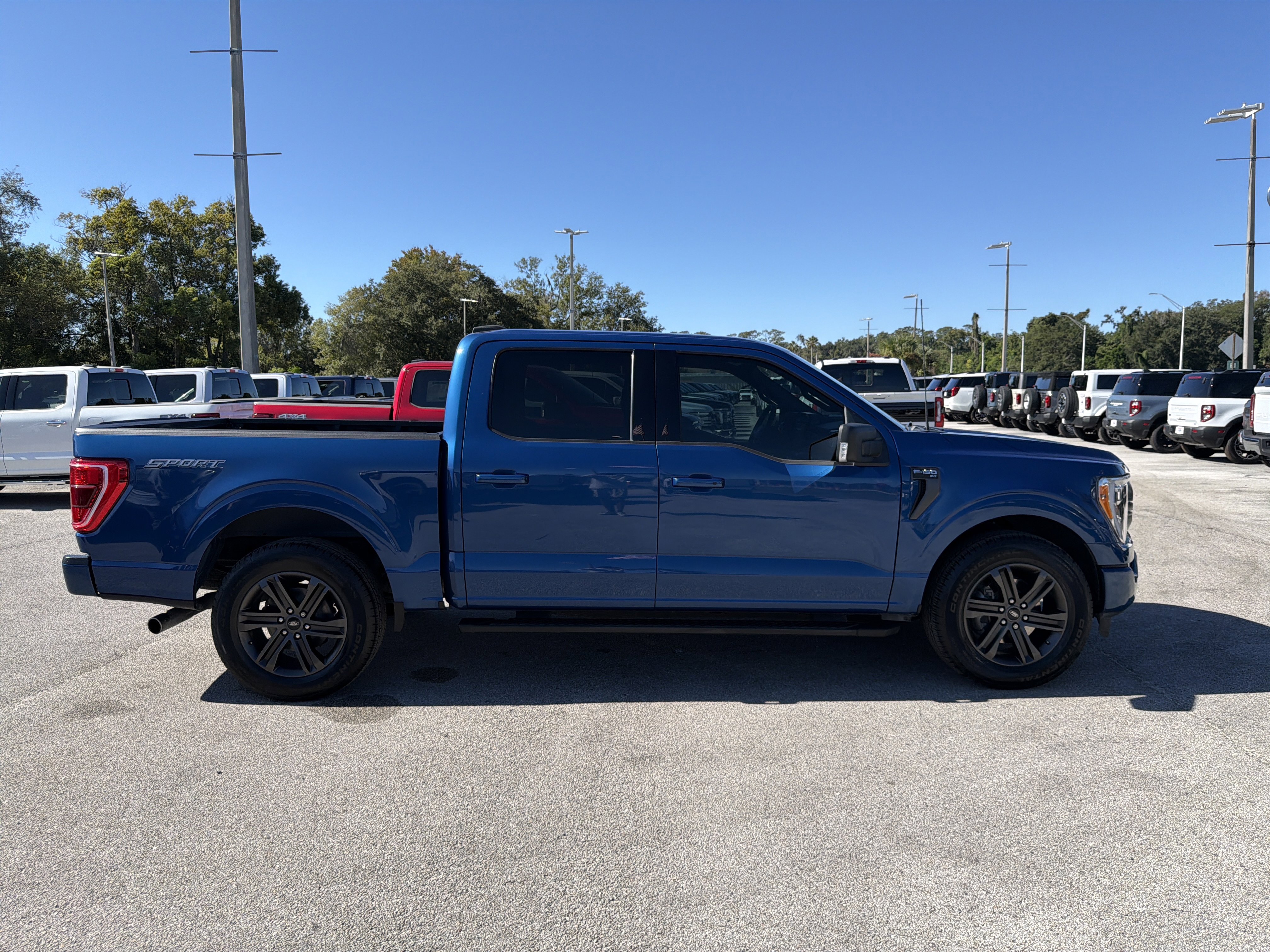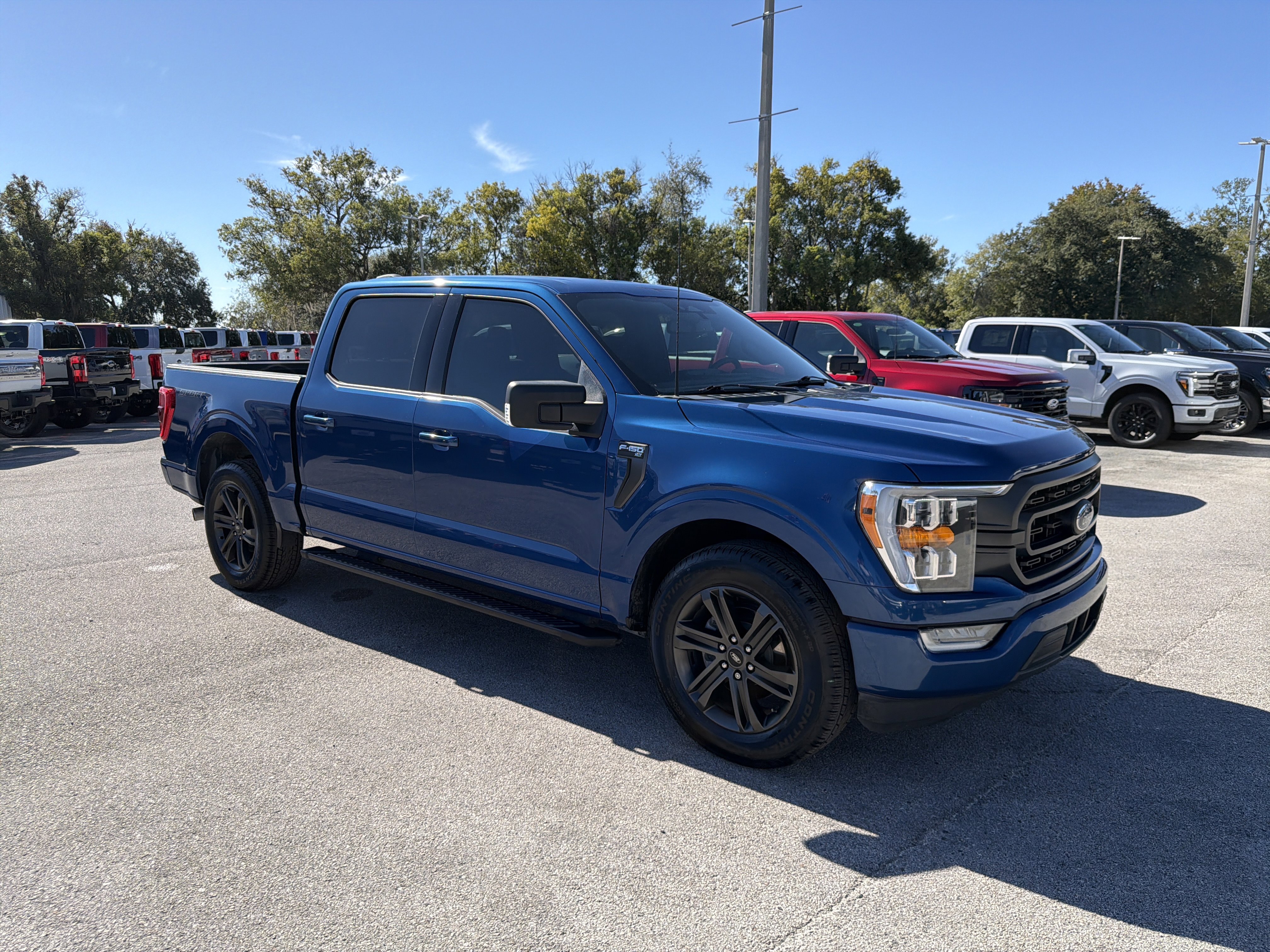 Certified. Atlas Blue Metallic 2022 Ford F-150 XLT RWD 10-Speed Automatic 2.7L V6 EcoBoost ABS brakes, Alloy wheels, Compass, Electronic Stability Control, Heated door mirrors, Illuminated entry, Low tire pressure warning, Remote keyless entry, Traction control.