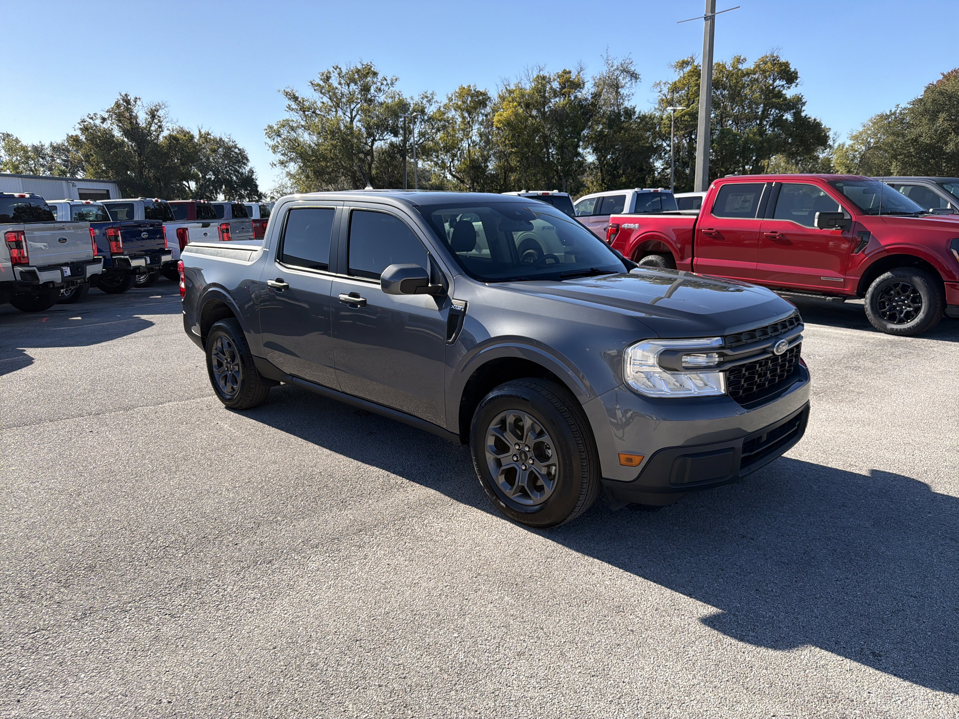Carbonized Gray Metallic 2023 Ford Maverick XLT FWD CVT 2.5L I-4 Hybrid ALLOY WHEELS, BACK UP CAMERA, BEST PRICE, BEST SELECTION!, BLUETOOTH, 2.5L I-4 Hybrid, 2.91 Axle Ratio, 4-Wheel Disc Brakes, 4G LTE Wi-Fi Hotspot Removal, 6 Speakers, ABS brakes, Air Conditioning, AM/FM radio, Apple CarPlay/Android Auto, Auto High-beam Headlights, Automatic temperature control, Bed Tie Down Locking Rails w/2 Locking Brackets, BLIS Blind Spot Info System w/Cross-Traffic Alert, Brake assist, Bumpers: body-color, Delay-off headlights, Driver door bin, Driver vanity mirror, Dual front impact airbags, Dual front side impact airbags, Electronic Stability Control, Exterior Parking Camera Rear, Ford Co-Pilot360, Front anti-roll bar, Front Bucket Seats, Front Center Armrest, Front reading lights, Front wheel independent suspension, Fully automatic headlights, Illuminated entry, Knee airbag, Lane-Keeping System, Low tire pressure warning, Occupant sensing airbag, Outside temperature display, Overhead airbag, Overhead console, Panic alarm, Passenger door bin, Passenger vanity mirror, Power steering, Power windows, Radio data system, Radio: AM/FM Stereo w/6 Speakers, Rear anti-roll bar, Rear step bumper, Remote keyless entry, Speed control, Speed-sensing steering, Spray-In Bedliner, Steering wheel mounted audio controls, Telescoping steering wheel, Tilt steering wheel, Traction control, Trip computer.