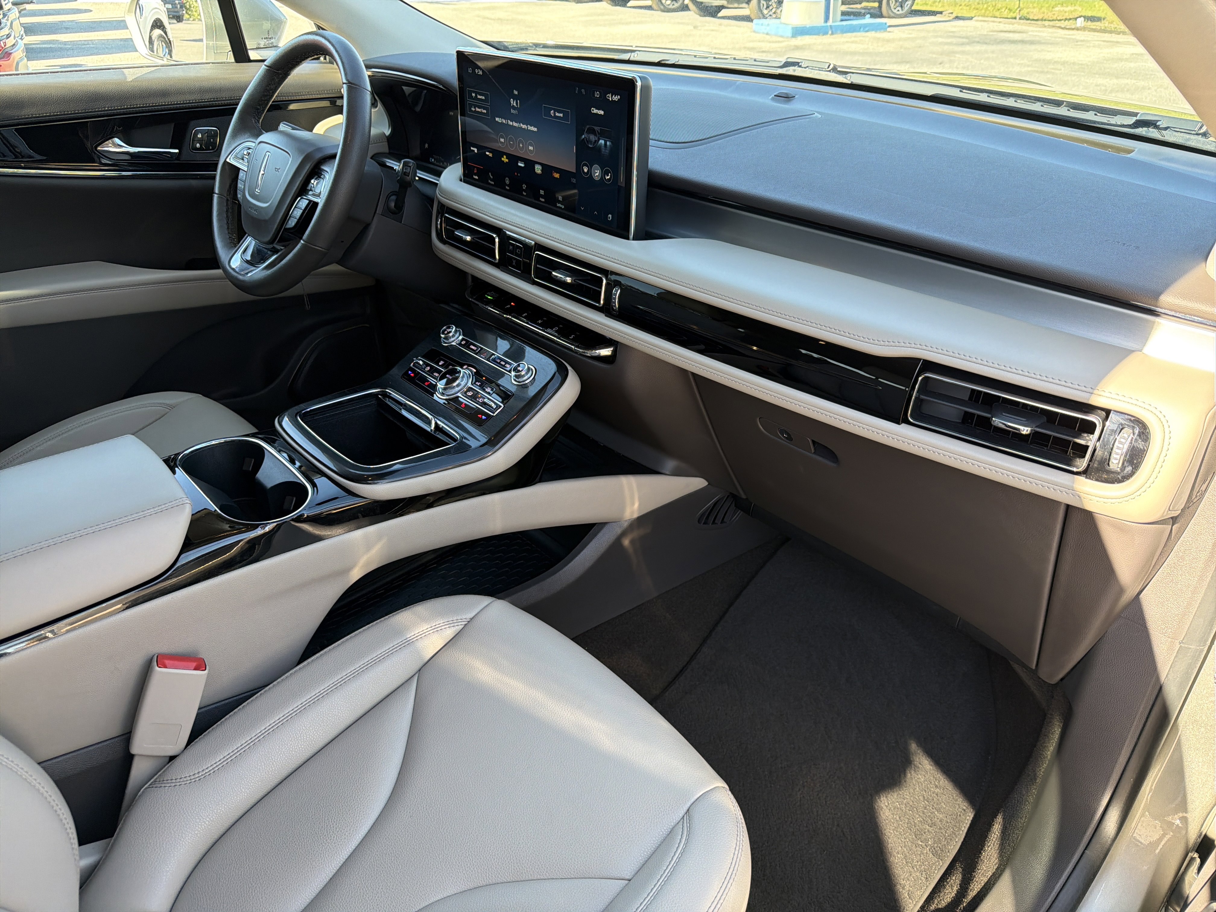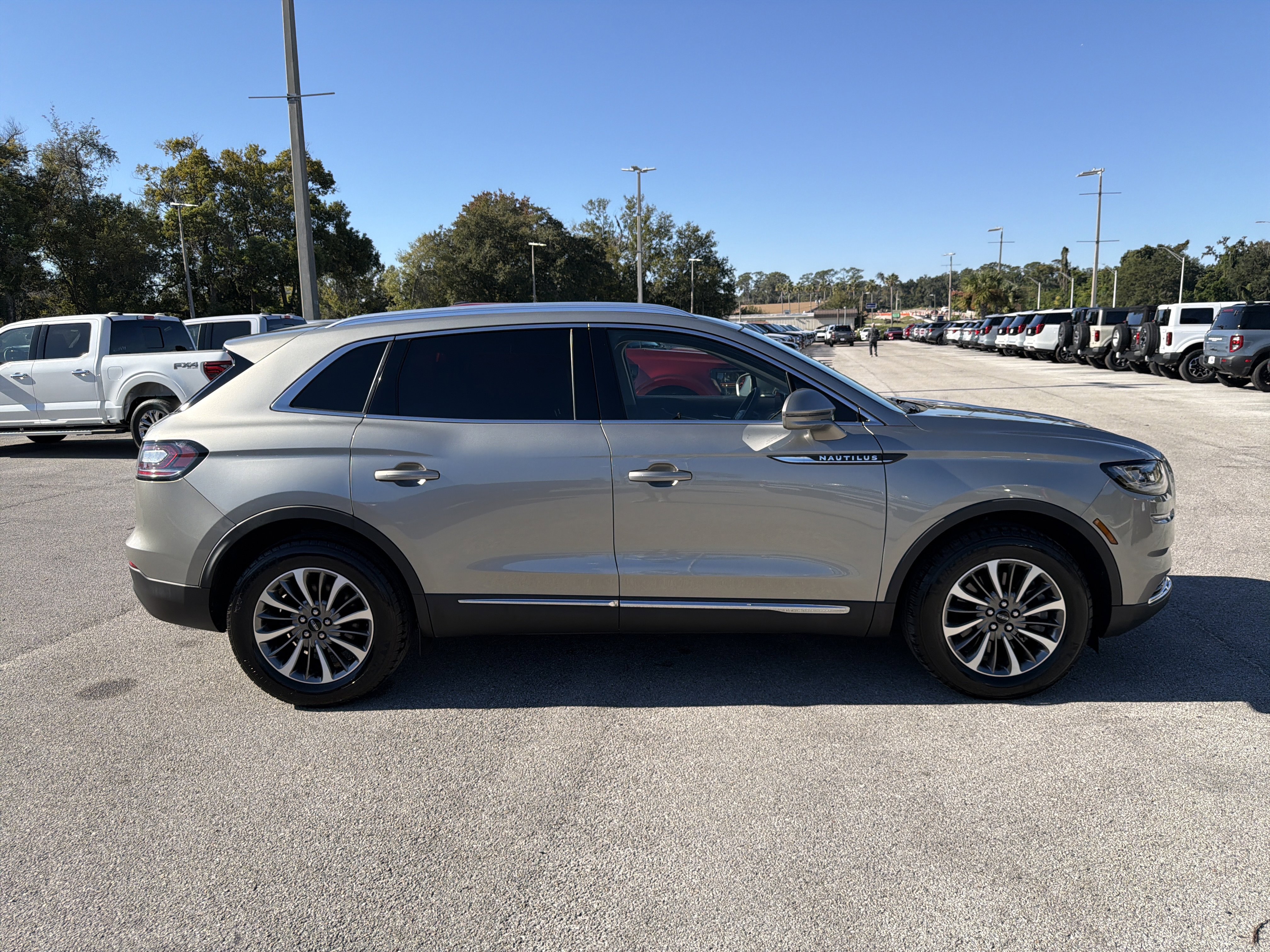 Sandstone Metallic 2023 Lincoln Nautilus Standard FWD 8-Speed Automatic 2.0L Turbocharged 10 Speakers, 3.80 Axle Ratio, 4-Wheel Disc Brakes, ABS brakes, Air Conditioning, Alexa Built-In, AM/FM Radio, AM/FM radio: SiriusXM with 360L, Auto High-beam Headlights, Auto-dimming Rear-View mirror, Automatic temperature control, Brake assist, Bumpers: body-color, Compass, Connected Build-In Navigation, Delay-off headlights, Driver door bin, Driver vanity mirror, Dual front impact airbags, Dual front side impact airbags, Electronic Stability Control, Emergency communication system: 911 Assist, Equipment Group 100A, Four wheel independent suspension, Front anti-roll bar, Front Bucket Seats, Front Center Armrest w/Storage, Front dual zone A/C, Front reading lights, Fully automatic headlights, Heated door mirrors, Heated front seats, Heated Lincoln Soft-Touch Front Comfort Seats, Illuminated entry, Knee airbag, Leather steering wheel, Low tire pressure warning, Memory seat, Occupant sensing airbag, Outside temperature display, Overhead airbag, Overhead console, Panic alarm, Passenger door bin, Passenger vanity mirror, Power door mirrors, Power driver seat, Power Liftgate, Power passenger seat, Power steering, Power Tilt/Telescoping Steering Column w/Memory, Power windows, Premium Package, Rear anti-roll bar, Rear reading lights, Rear seat center armrest, Rear window defroster, Rear window wiper, Remote keyless entry, Satin Roof Rack Side Rails w/o Crossbars, Security system, Speed control, Speed-sensing steering, Speed-Sensitive Wipers, Split folding rear seat, Spoiler, Steering wheel mounted A/C controls, Steering wheel mounted audio controls, SYNC 4 w/Enhanced Voice Recognition, Tachometer, Telescoping steering wheel, Tilt steering wheel, Traction control, Trip computer, Turn signal indicator mirrors, Universal Garage Door Opener, Variably intermittent wipers, Wheels: 18 Premium Painted Bright Machined Alum.
