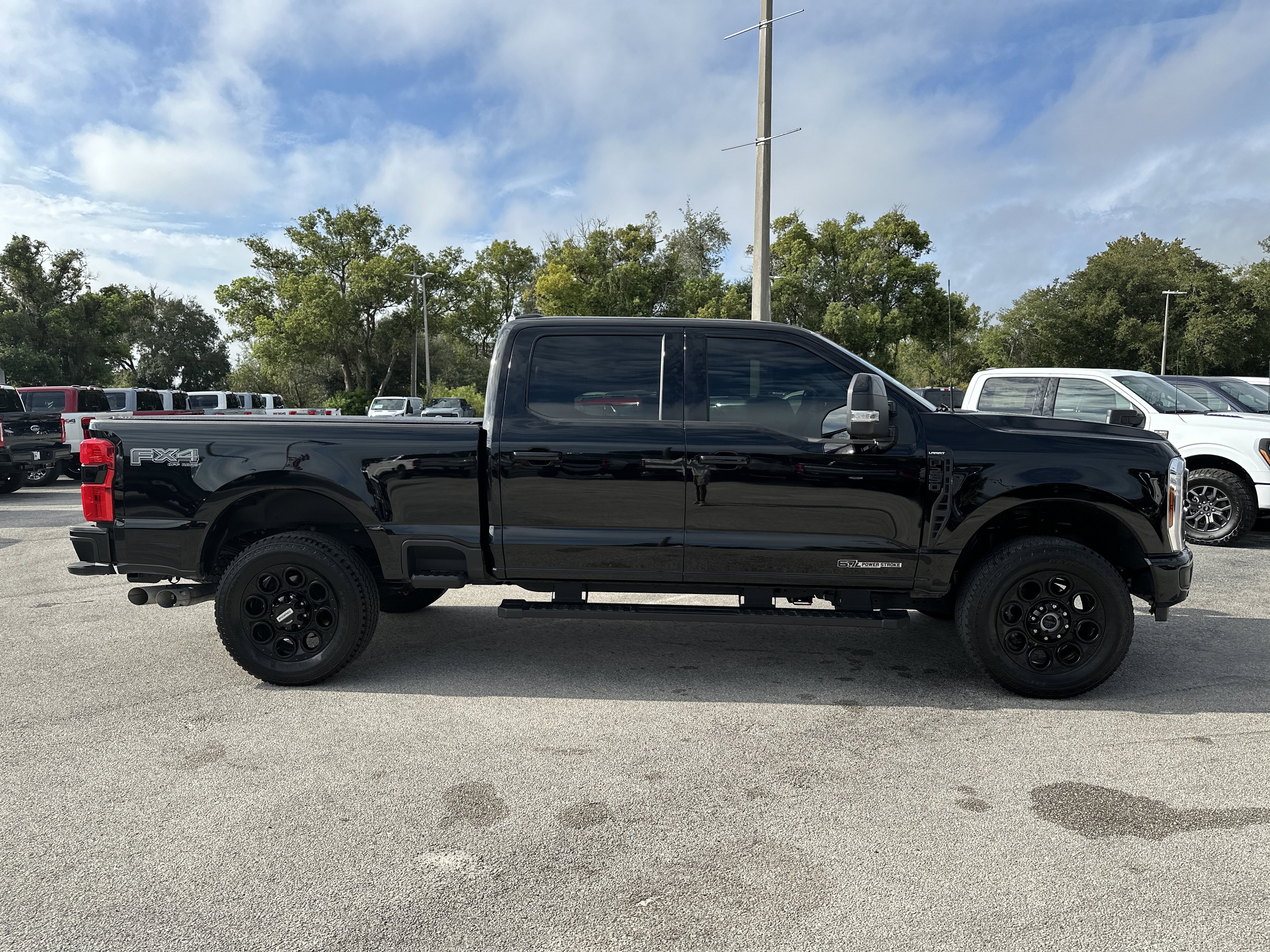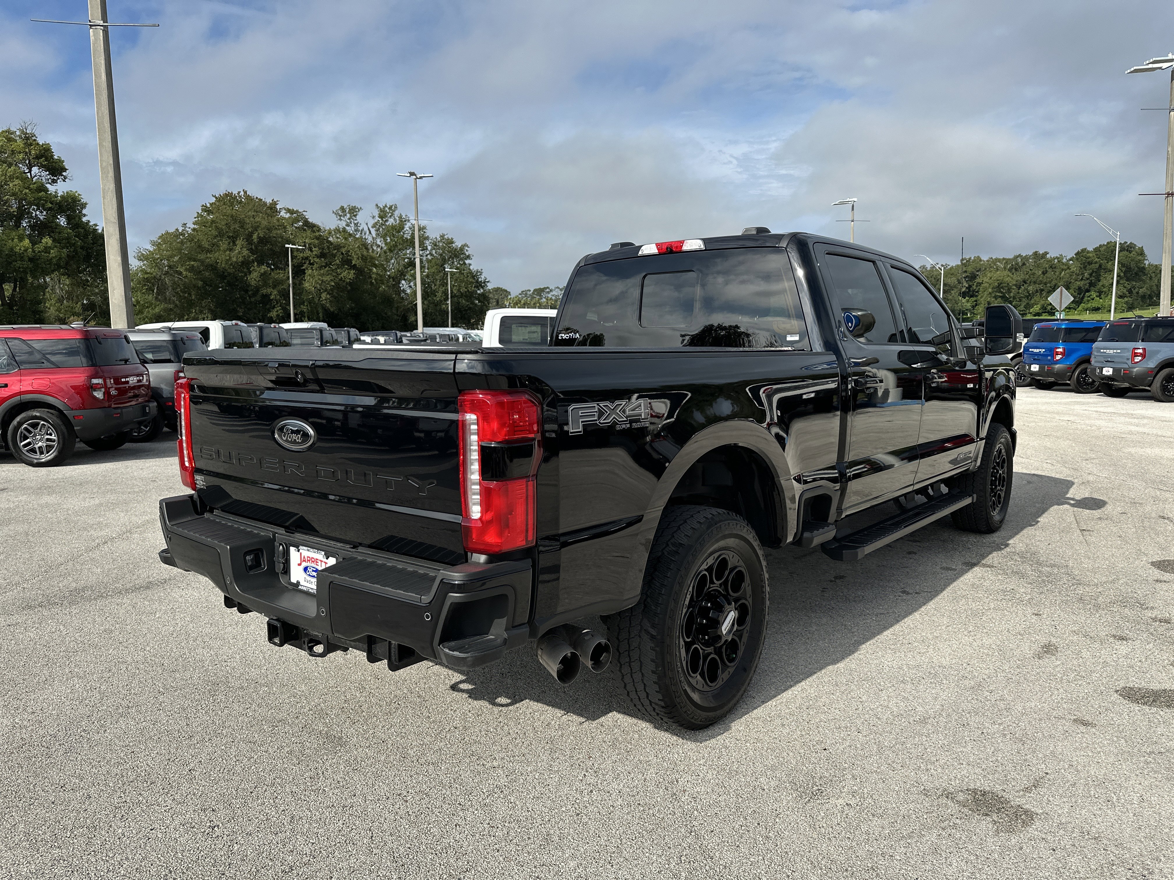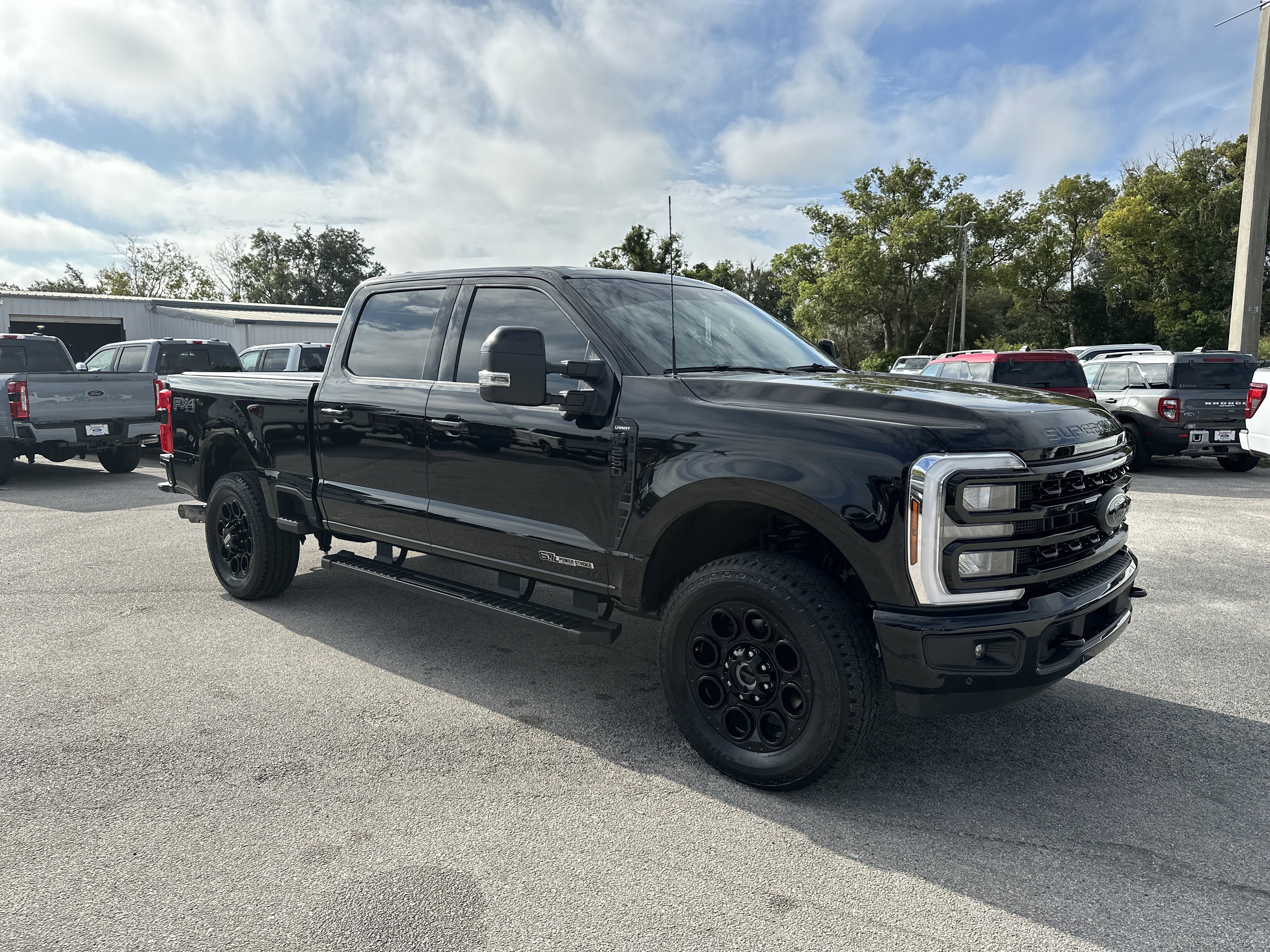 Black Metallic 2024 Ford F-250SD Lariat 4WD 10-Speed Automatic Power Stroke 6.7L V8 DI 32V OHV Turbodiesel ALLOY WHEELS, BACK UP CAMERA, BLUETOOTH, KEYLESS ENTRY, LEATHER SEATING, 4WD, 4-Way Adjustable Headrests, 4-Wheel Disc Brakes, 5th Wheel/Gooseneck Hitch Prep Package, 6 Ebony Black Angular Running Boards, 8 Speakers, ABS brakes, Adjustable pedals, Air Conditioning, All-Weather Floor Mats, AM/FM radio: SiriusXM with 360L, Auto High-beam Headlights, Auto tilt-away steering wheel, Auto-dimming Rear-View mirror, Automatic temperature control, Black Appearance Package, Body Color Front & Rear Bumpers, Brake assist, Bumpers: chrome, Compass, Delay-off headlights, Driver door bin, Driver vanity mirror, Dual 68 AH/65 AGM Batteries, Dual front impact airbags, Dual front side impact airbags, Ebony Black Painted Front Grille Bars, Ebony Black Painted Mirror Caps, Electronic Stability Control, Electronic-Locking w/3.55 Axle Ratio, Emergency communication system: SYNC 4 911 Assist, Exterior Parking Camera Rear, F-250 >10K GVWR Package, Flow-Through Console, Front anti-roll bar, Front Bucket Seats, Front Center Armrest, Front dual zone A/C, Front fog lights, Front Leather-Trimmed 40/Console/40 Seats, Front License Plate Bracket, Front reading lights, Front Sensing System, Fully automatic headlights, FX4 Off-Road Package, Garage door transmitter, Head-Up Display, Heated door mirrors, Heated front seats, Heated rear seats, Heated steering wheel, Heavy-Service Front Suspension Package, High Capacity 11.6 Axle Upgrade Package, Hill Descent Control, Illuminated entry, Intelligent Adaptive Cruise Control w/Stop-and-Go, Lariat Ultimate Package, Leather steering wheel, Low tire pressure warning, Max Recline Seats, Memory seat, Navigation system: Connected Navigation (includes complimentary 1-year trial), Off-Road Specifically Tuned Shock Absorbers, Order Code 608A, Outside temperature display, Overhead airbag, Overhead console, Panic alarm, Passenger door bin, Passenger vanity mirror, Pedal memory, Power door mirrors, Power driver seat, Power passenger seat, Power steering, Power windows, Pro Trailer Backup Assist, Pro Trailer Hitch Assist, Radio: B&O Sound System by Bang & Olufsen, Radio: B&O Unleashed Sound System by Bang & Olufsen, Rain sensing wipers, Rear reading lights, Rear seat center armrest, Rear step bumper, Rear Wheel Well Liners (Pre-Installed), Rear window defroster, Remote keyless entry, Security system, SiriusXM Radio w/360L, Speed control, Split folding rear seat, Steering wheel memory, Steering wheel mounted audio controls, SYNC 4 w/Enhanced Voice Recognition, Tachometer, Tailgate Step & Handle, Telescoping steering wheel, Tilt steering wheel, Tough Bed Spray-In Bedliner, Traction control, Trip computer, Turn signal indicator mirrors, Unique FX4 Off-Road Box Decal, Upfitter Switches (6), Variably intermittent wipers, Ventilated front seats, Wheels: 18 Bright Machined & Carbonized Gray Alum, Wheels: 20 Machined & Ebony Black High Gloss, Wireless Charging Pad.