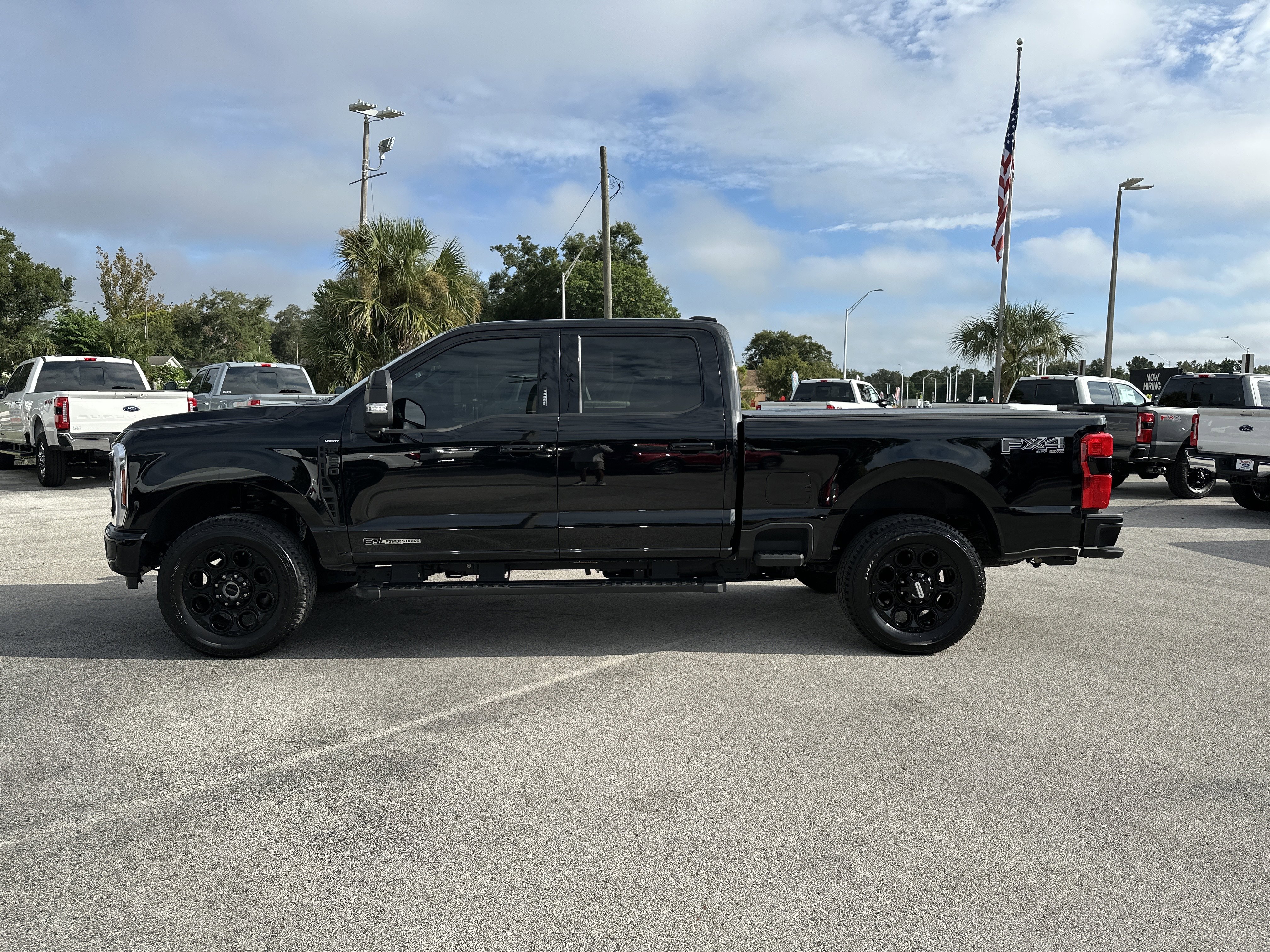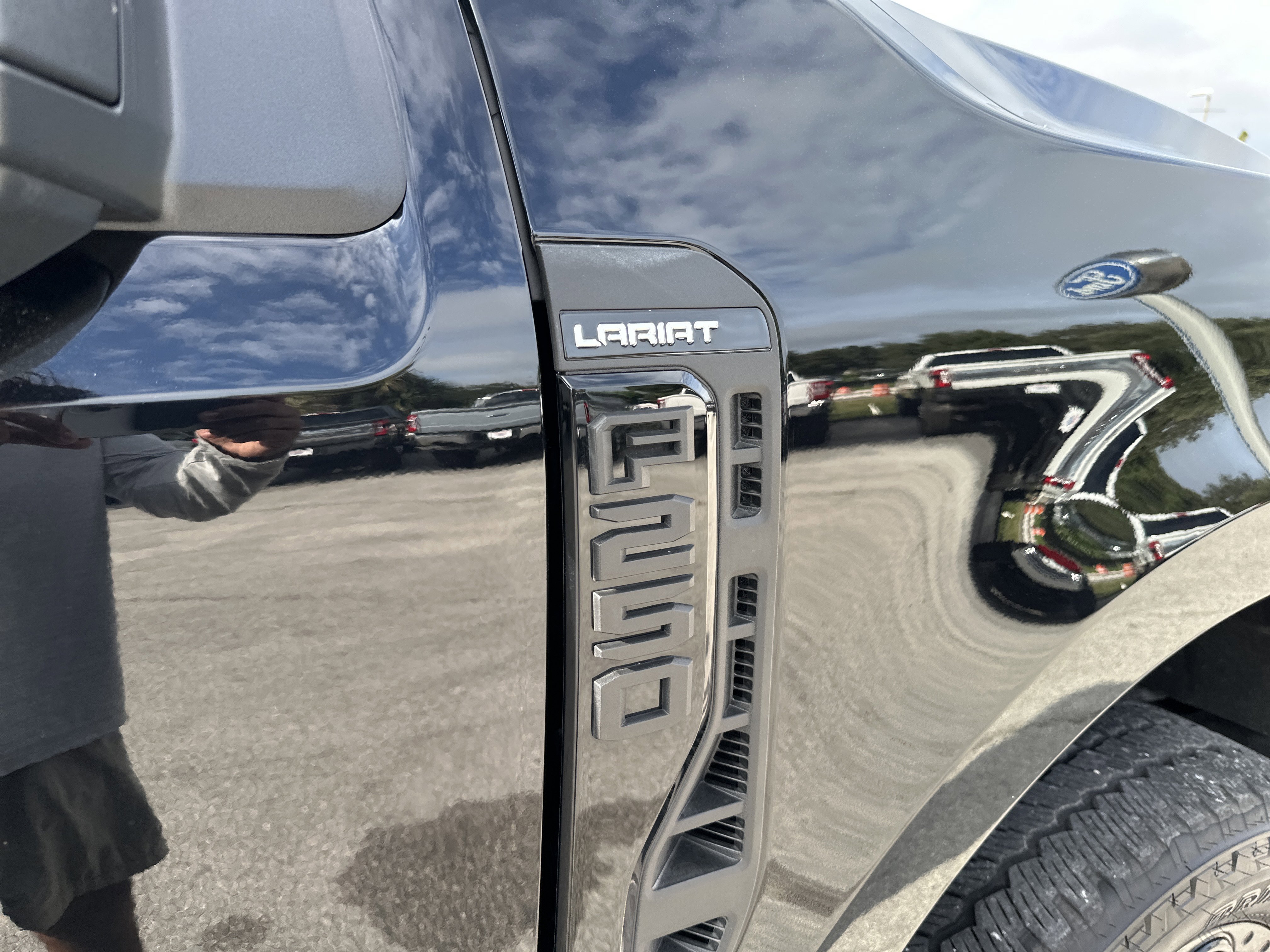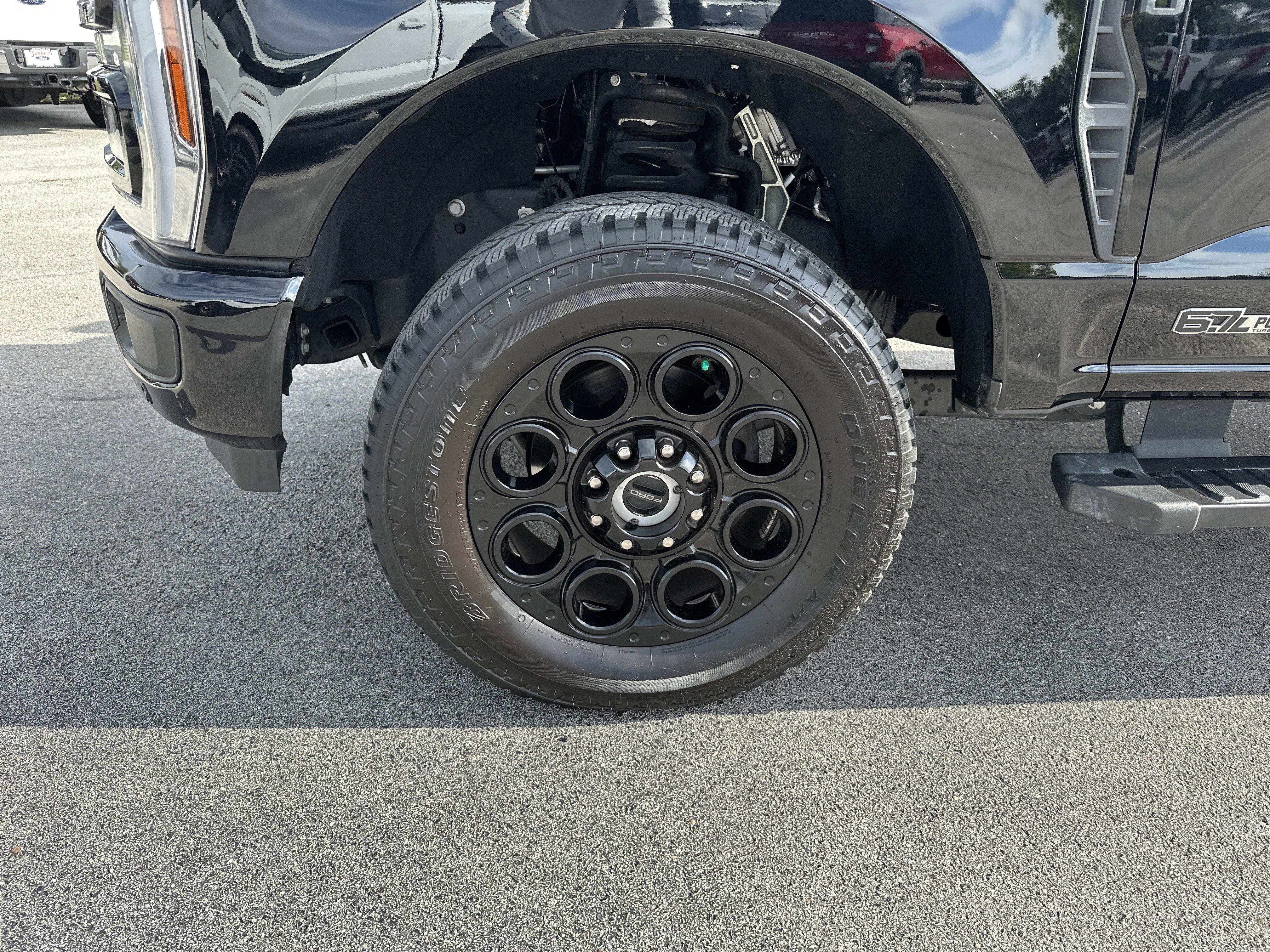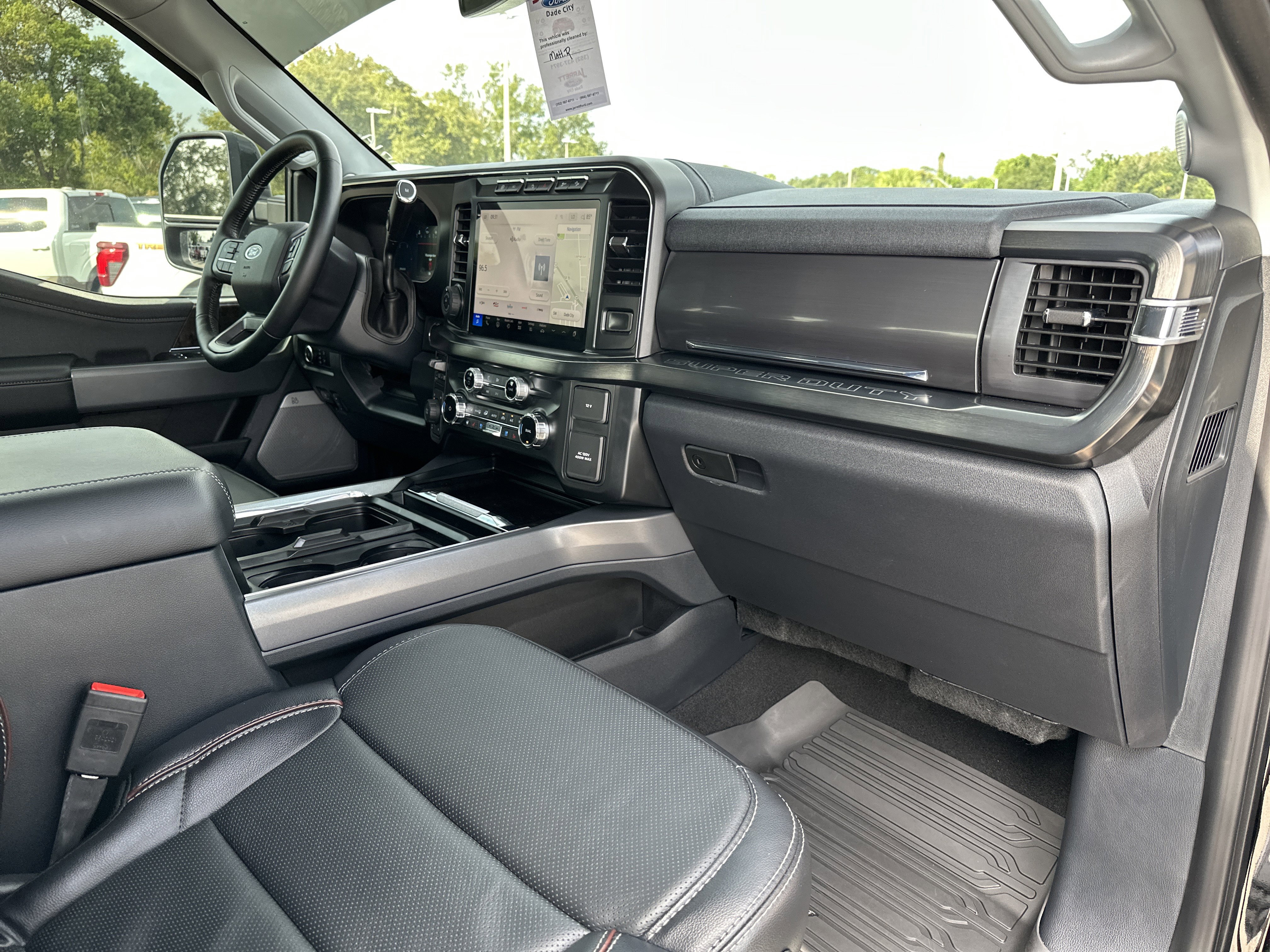 Black Metallic 2024 Ford F-250SD Lariat 4WD 10-Speed Automatic Power Stroke 6.7L V8 DI 32V OHV Turbodiesel ALLOY WHEELS, BACK UP CAMERA, BLUETOOTH, KEYLESS ENTRY, LEATHER SEATING, 4WD, 4-Way Adjustable Headrests, 4-Wheel Disc Brakes, 5th Wheel/Gooseneck Hitch Prep Package, 6 Ebony Black Angular Running Boards, 8 Speakers, ABS brakes, Adjustable pedals, Air Conditioning, All-Weather Floor Mats, AM/FM radio: SiriusXM with 360L, Auto High-beam Headlights, Auto tilt-away steering wheel, Auto-dimming Rear-View mirror, Automatic temperature control, Black Appearance Package, Body Color Front & Rear Bumpers, Brake assist, Bumpers: chrome, Compass, Delay-off headlights, Driver door bin, Driver vanity mirror, Dual 68 AH/65 AGM Batteries, Dual front impact airbags, Dual front side impact airbags, Ebony Black Painted Front Grille Bars, Ebony Black Painted Mirror Caps, Electronic Stability Control, Electronic-Locking w/3.55 Axle Ratio, Emergency communication system: SYNC 4 911 Assist, Exterior Parking Camera Rear, F-250 >10K GVWR Package, Flow-Through Console, Front anti-roll bar, Front Bucket Seats, Front Center Armrest, Front dual zone A/C, Front fog lights, Front Leather-Trimmed 40/Console/40 Seats, Front License Plate Bracket, Front reading lights, Front Sensing System, Fully automatic headlights, FX4 Off-Road Package, Garage door transmitter, Head-Up Display, Heated door mirrors, Heated front seats, Heated rear seats, Heated steering wheel, Heavy-Service Front Suspension Package, High Capacity 11.6 Axle Upgrade Package, Hill Descent Control, Illuminated entry, Intelligent Adaptive Cruise Control w/Stop-and-Go, Lariat Ultimate Package, Leather steering wheel, Low tire pressure warning, Max Recline Seats, Memory seat, Navigation system: Connected Navigation (includes complimentary 1-year trial), Off-Road Specifically Tuned Shock Absorbers, Order Code 608A, Outside temperature display, Overhead airbag, Overhead console, Panic alarm, Passenger door bin, Passenger vanity mirror, Pedal memory, Power door mirrors, Power driver seat, Power passenger seat, Power steering, Power windows, Pro Trailer Backup Assist, Pro Trailer Hitch Assist, Radio: B&O Sound System by Bang & Olufsen, Radio: B&O Unleashed Sound System by Bang & Olufsen, Rain sensing wipers, Rear reading lights, Rear seat center armrest, Rear step bumper, Rear Wheel Well Liners (Pre-Installed), Rear window defroster, Remote keyless entry, Security system, SiriusXM Radio w/360L, Speed control, Split folding rear seat, Steering wheel memory, Steering wheel mounted audio controls, SYNC 4 w/Enhanced Voice Recognition, Tachometer, Tailgate Step & Handle, Telescoping steering wheel, Tilt steering wheel, Tough Bed Spray-In Bedliner, Traction control, Trip computer, Turn signal indicator mirrors, Unique FX4 Off-Road Box Decal, Upfitter Switches (6), Variably intermittent wipers, Ventilated front seats, Wheels: 18 Bright Machined & Carbonized Gray Alum, Wheels: 20 Machined & Ebony Black High Gloss, Wireless Charging Pad.
