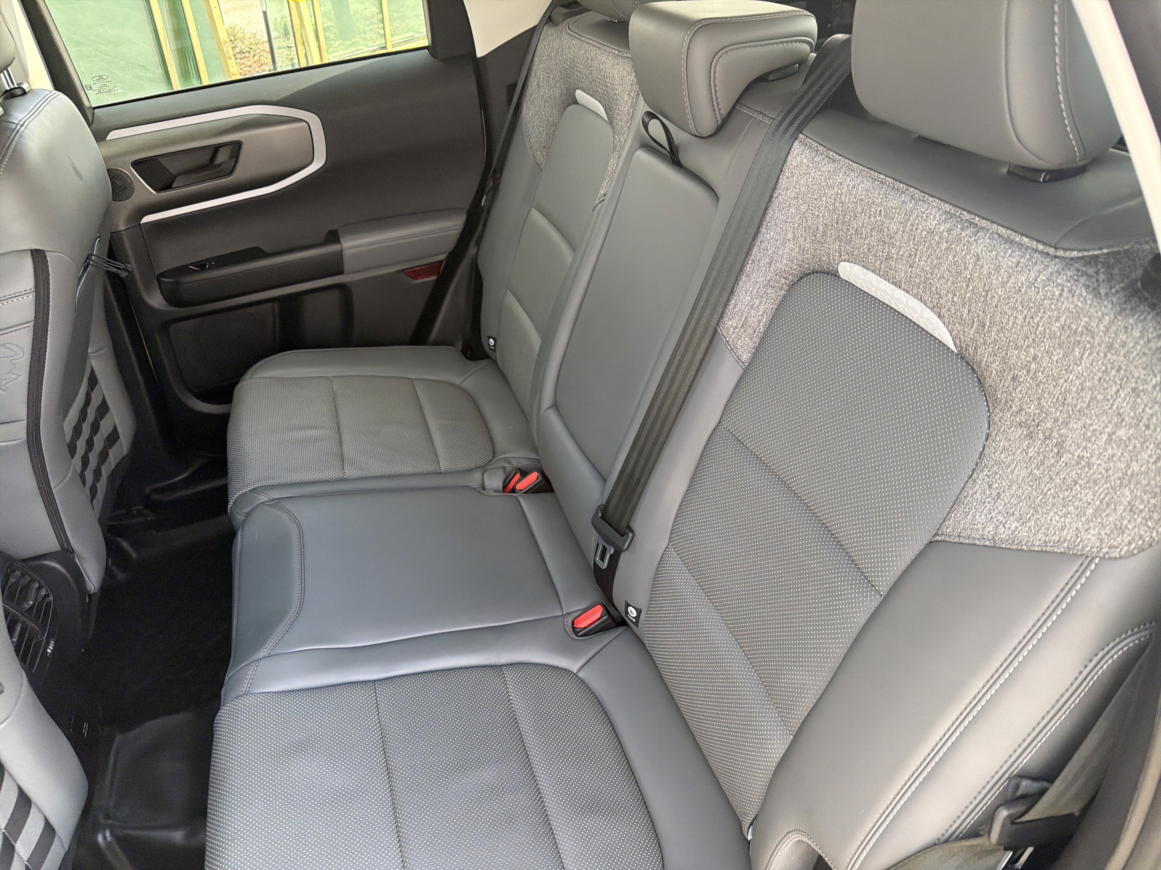 Oxford White 2025 Ford Bronco Sport Badlands 4WD 8-Speed Automatic EcoBoost 2.0L I4 GTDi DOHC Turbocharged VCT 4-Wheel Disc Brakes, 6 Speakers, ABS brakes, Air Conditioning, AM/FM radio: SiriusXM, AM/FM Stereo, Auto High-beam Headlights, Auto-dimming Rear-View mirror, Automatic temperature control, B&O Sound System by Bang & Olufsen, Badlands Tech Package, Brake assist, Compass, Connected Navigation, Delay-off headlights, Driver door bin, Driver vanity mirror, Dual front impact airbags, Dual front side impact airbags, Electronic Stability Control, Emergency communication system: SYNC 4 911 Assist, Equipment Group 400A, Four wheel independent suspension, Front anti-roll bar, Front Bucket Seats, Front Center Armrest, Front fog lights, Front License Plate Bracket, Front reading lights, Fully automatic headlights, Garage door transmitter, HD Radio, Heated door mirrors, Heated front seats, Heated steering wheel, Illuminated entry, Knee airbag, Leather Trimmed Front Bucket Seats, Low tire pressure warning, Memory seat, Occupant sensing airbag, On-Road Assistance Kit (DIO), Outside temperature display, Overhead airbag, Overhead console, Panic alarm, Passenger door bin, Passenger vanity mirror, Power door mirrors, Power driver seat, Power Moonroof, Power passenger seat, Power steering, Power windows, Radio data system, Rear anti-roll bar, Rear reading lights, Rear seat center armrest, Rear window defroster, Rear window wiper, Remote keyless entry, Security system, SiriusXM, Speed control, Speed-sensing steering, Split folding rear seat, Steering wheel mounted audio controls, SYNC 4 w/Enhanced Voice Recognition, Tachometer, Telescoping steering wheel, Tilt steering wheel, Traction control, Trip computer, Wheels: 17 Matte Black-Painted Aluminum.
