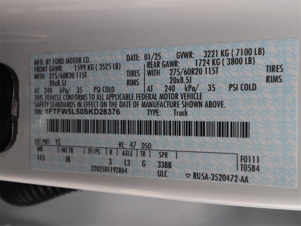 Oxford White 2025 Ford F-150 Lariat 4WD 10-Speed Automatic 5.0L V8